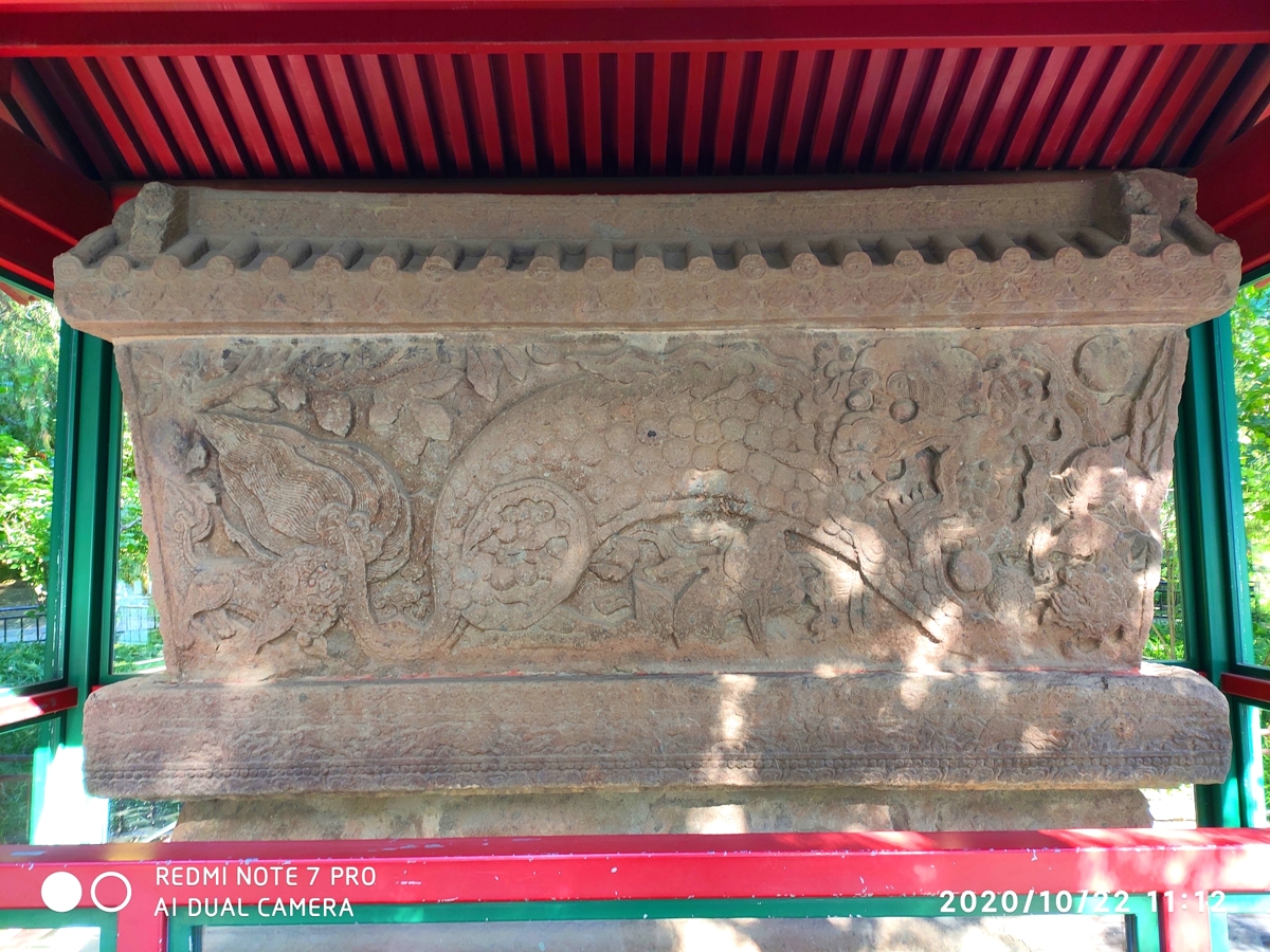 This Yuan Dynasty artifact is made from neutral volcanic rock—its color and texture resemble iron, hence the name. Standing 1.89 meters high and 3.56 meters long, it features shallow carvings of clouds and mythical creatures. Originally a screen wall in front of a temple outside Jiandemen (now Desheng Gate), it was moved to its current location in 1947. In 1987, the original base was recovered from Iron Screen Lane, completing this 600-year-old relic.