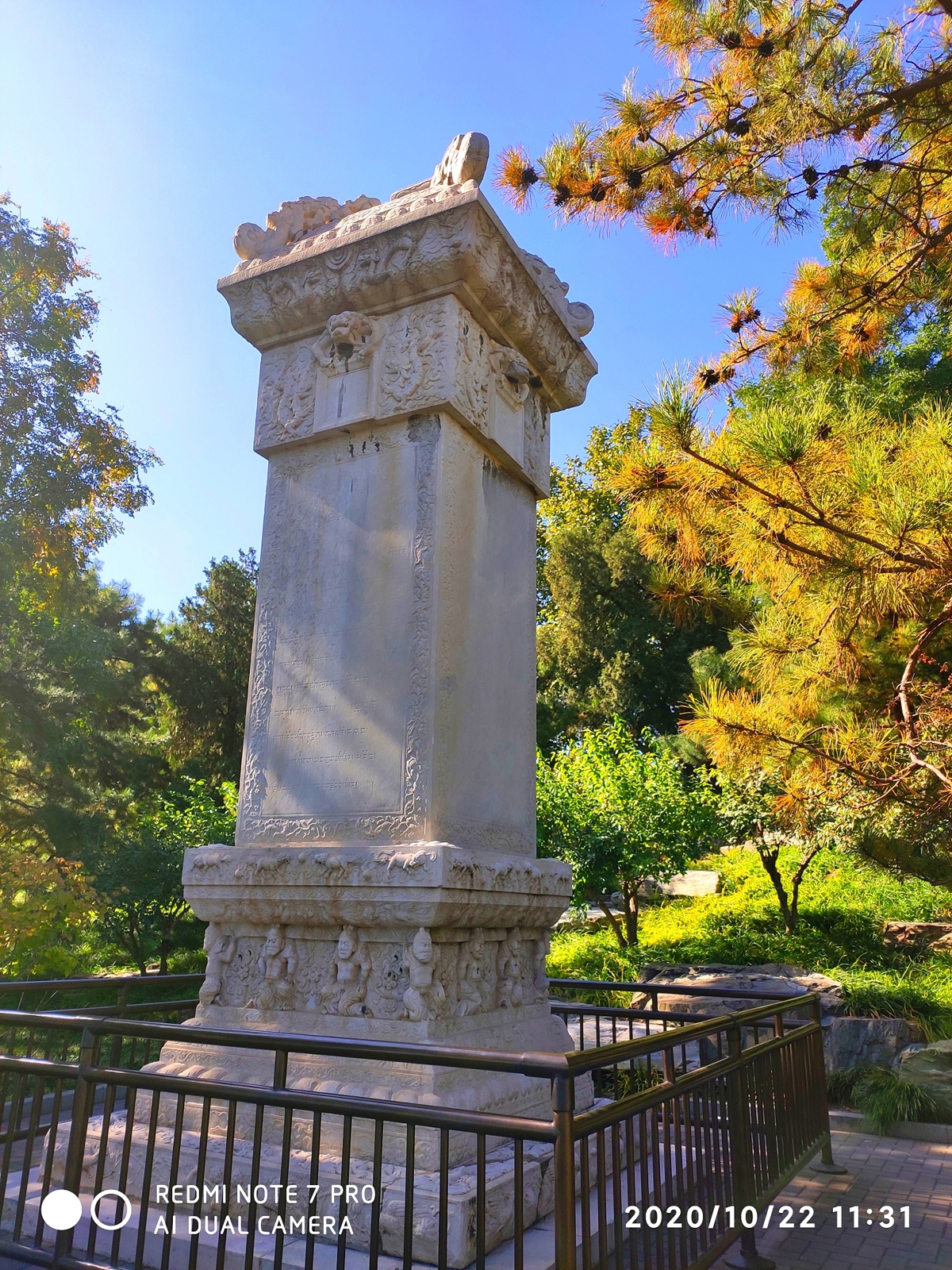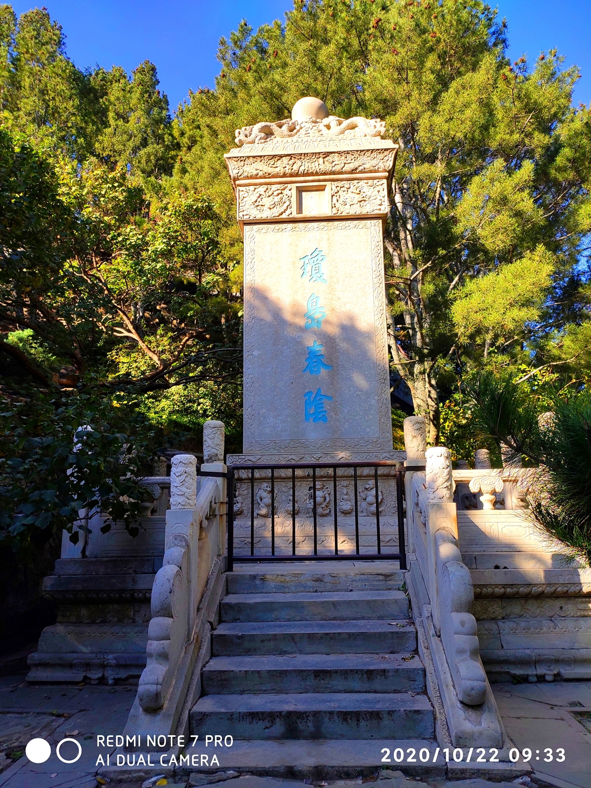 The "Qiongdao Chun Yin" (琼岛春阴) monument is one of the famous "Eight Views of Yanjing" (燕京八景)—the Eight Great Sights of Beijing. Erected by Emperor Qianlong in 1751, the monument features his calligraphy on the front and poems on the other three sides.