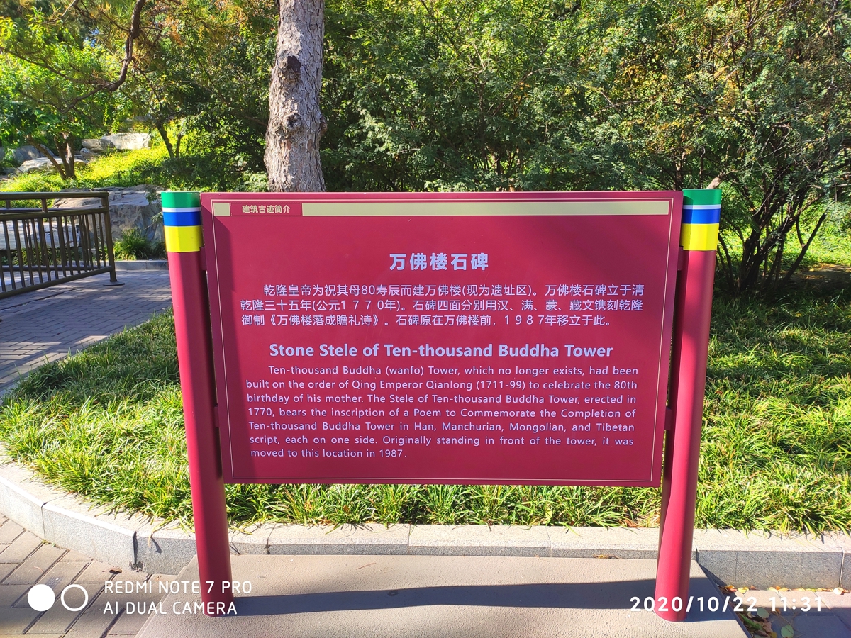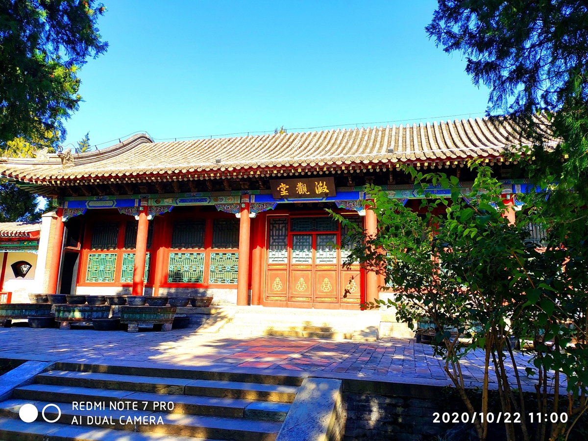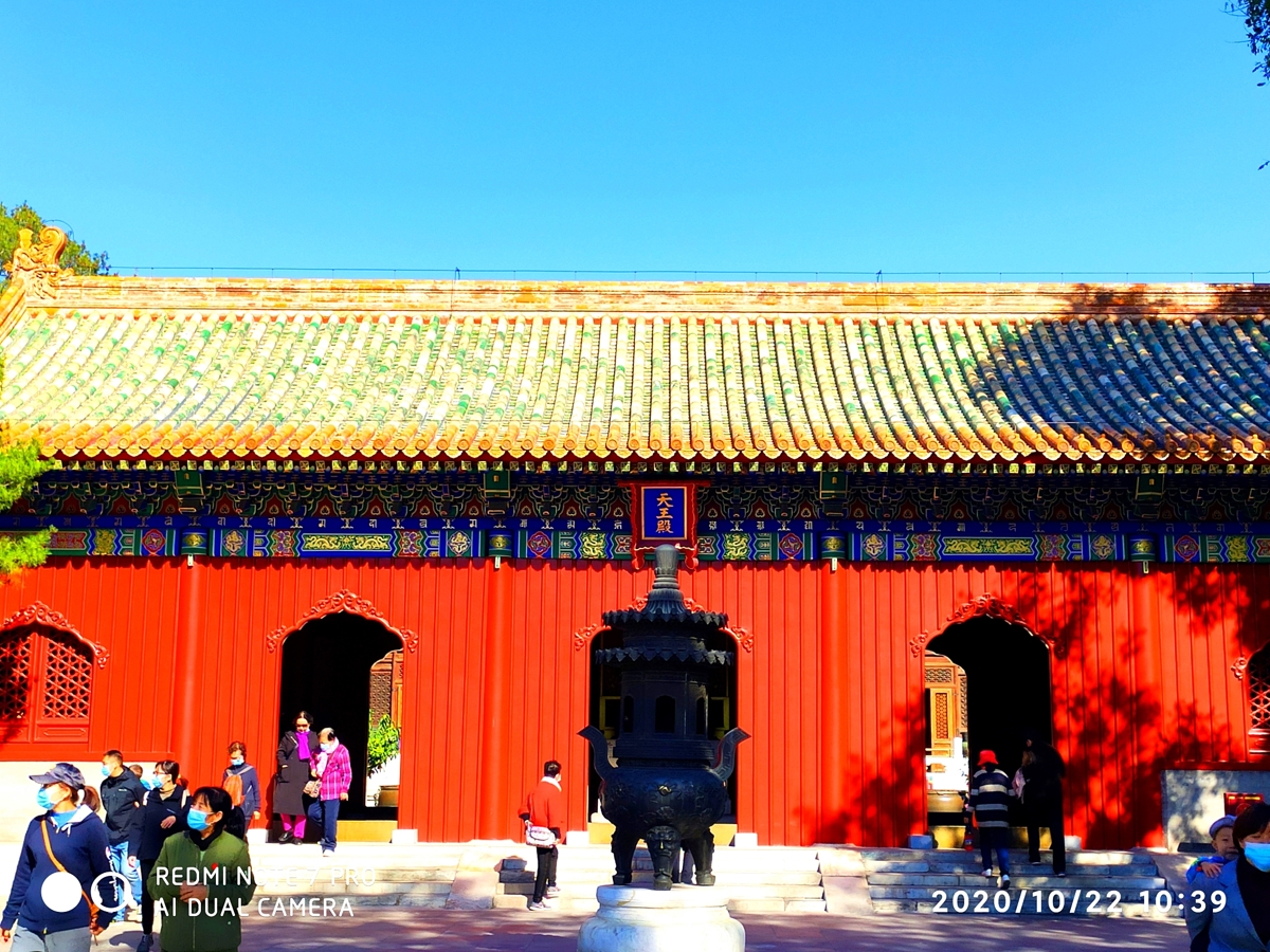 Originally the Western Buddhist Temple (西天禅林) from the Ming Dynasty, the front of this complex features a four-pillar, seven-story glass archway with inscriptions by Emperor Qianlong—"华藏界" (Huázàng Jiè - Realm of Buddhist Treasure) on the front and "须弥春" (Xūmí Chūn - Spring of Sumeru) on the back.