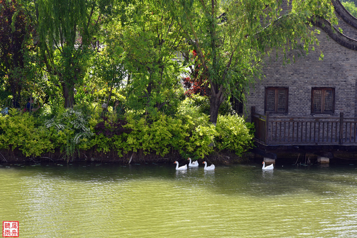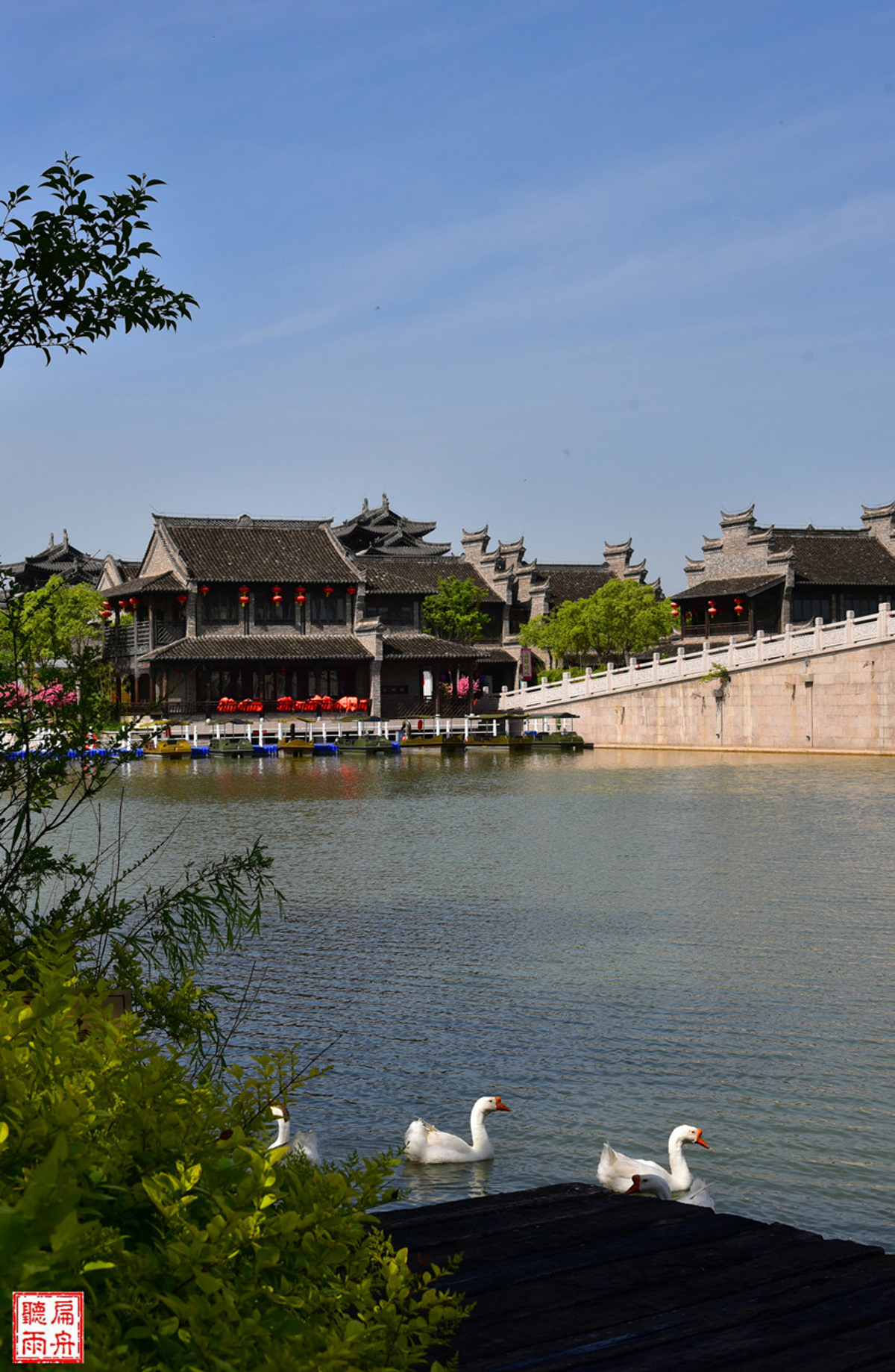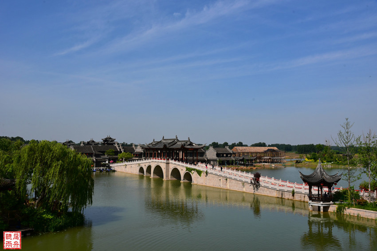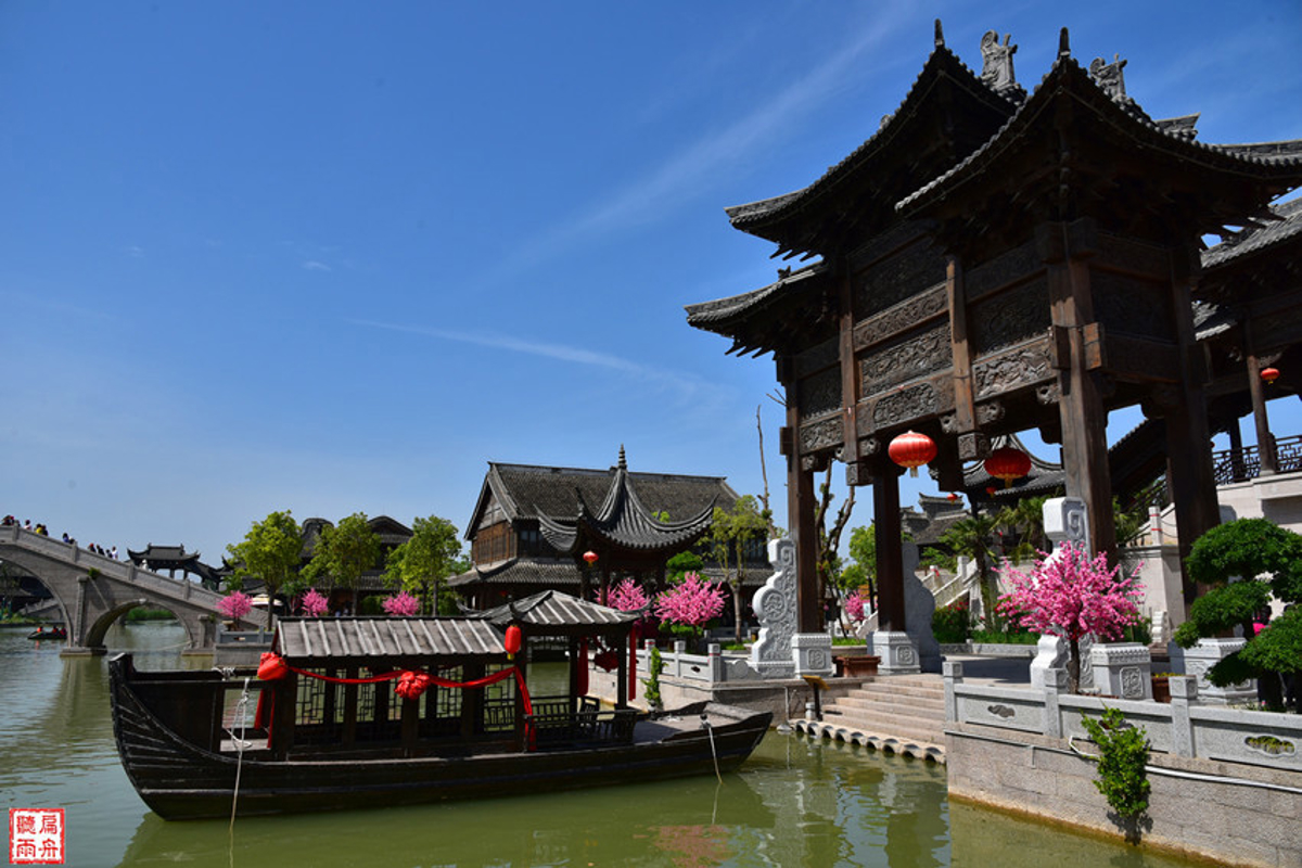 The聚仙湖 (Juxian Lake) was intentionally designed to recreate a classic Central Plains water town—the area thrived on water transport for over 2,000 years. The运河 (Yunhe) grain transport canal brought essential supplies, and the验粮楼 (Yanliang Tower) was the government customs office where grain shipments were inspected, weighed, and registered.