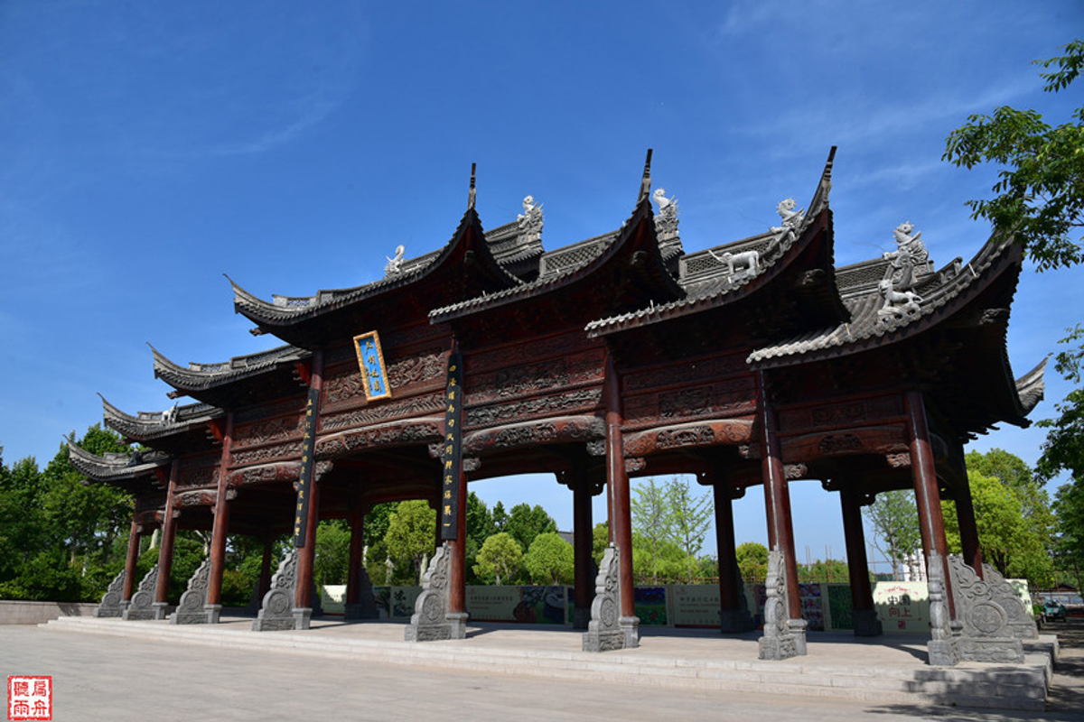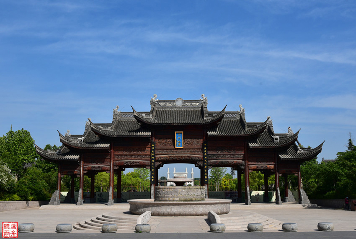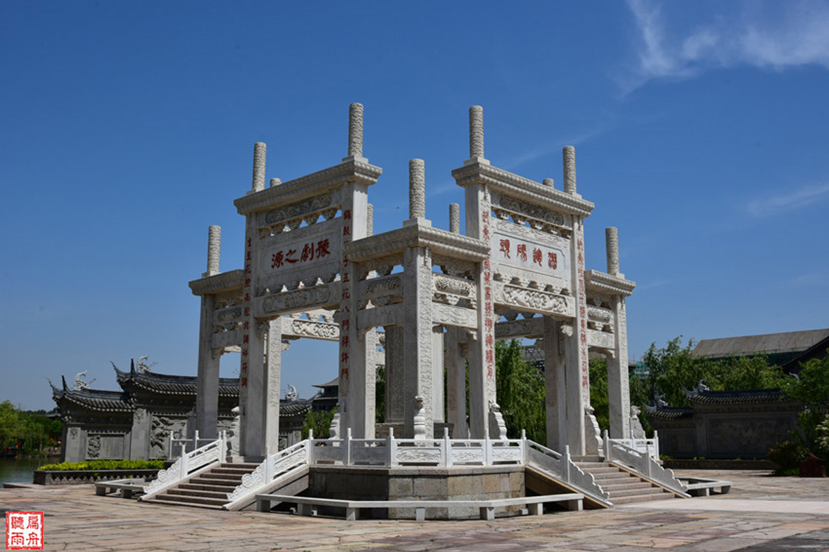 The four directional memorial arches are dedicated to Zhu Xian Zhen's four cultural pillars: the Grain Transport Canal, the birthplace of Chinese New Year pictures, the origin of Yu Opera, and the famous朱仙大捷 (Zhu Xian Victory) battle led by general岳飞 (Yue Fei) against the Jin army.
