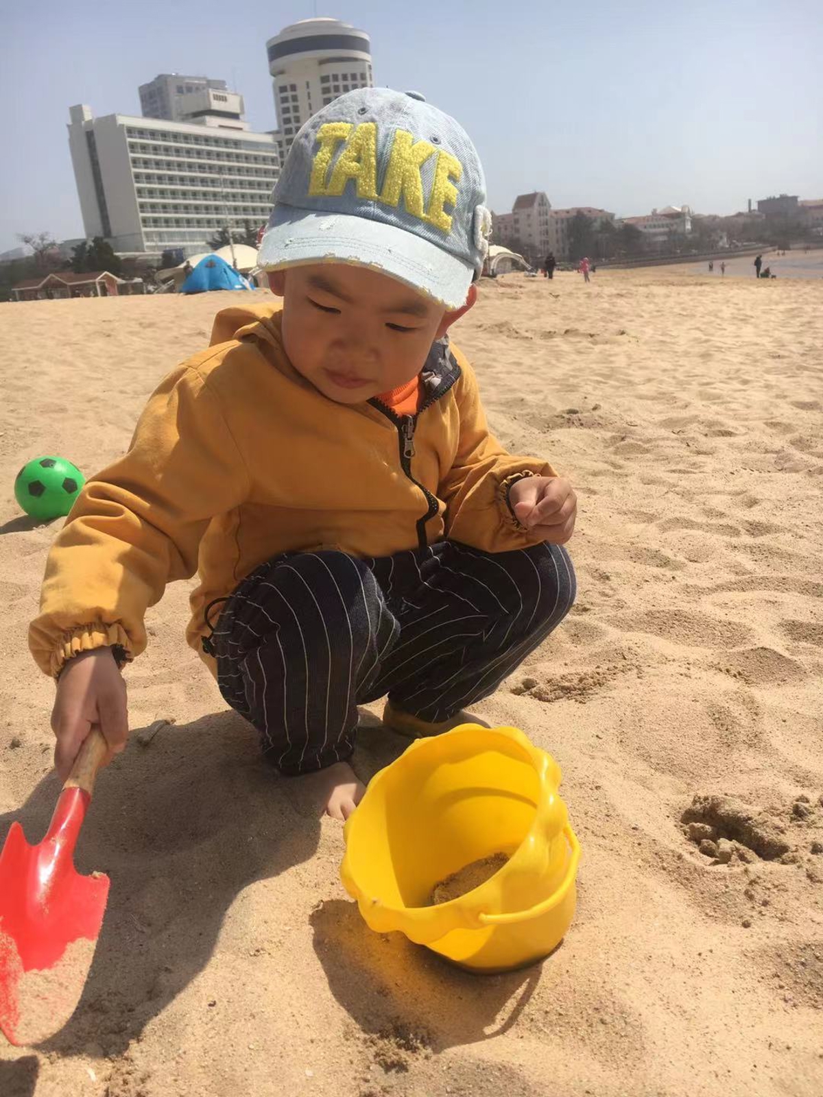 After the zoo, we spent the afternoon at No. 1 Bathing Beach (第一海水浴场). We bought a kite and spent hours flying it and building sandcastles. The May weather was perfect.