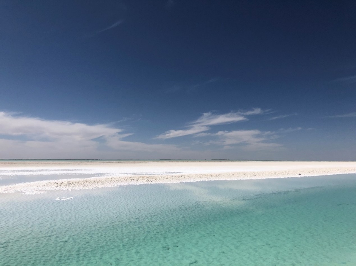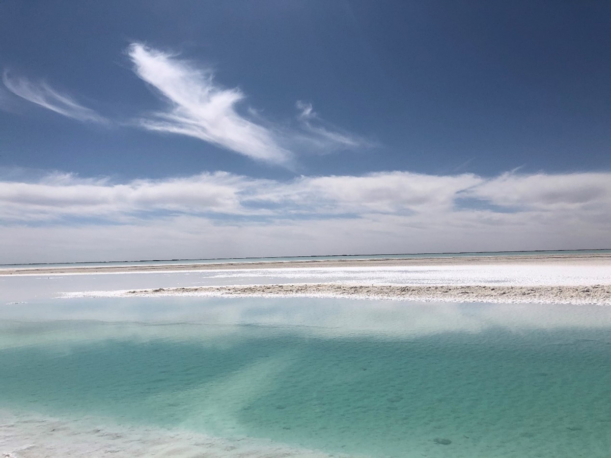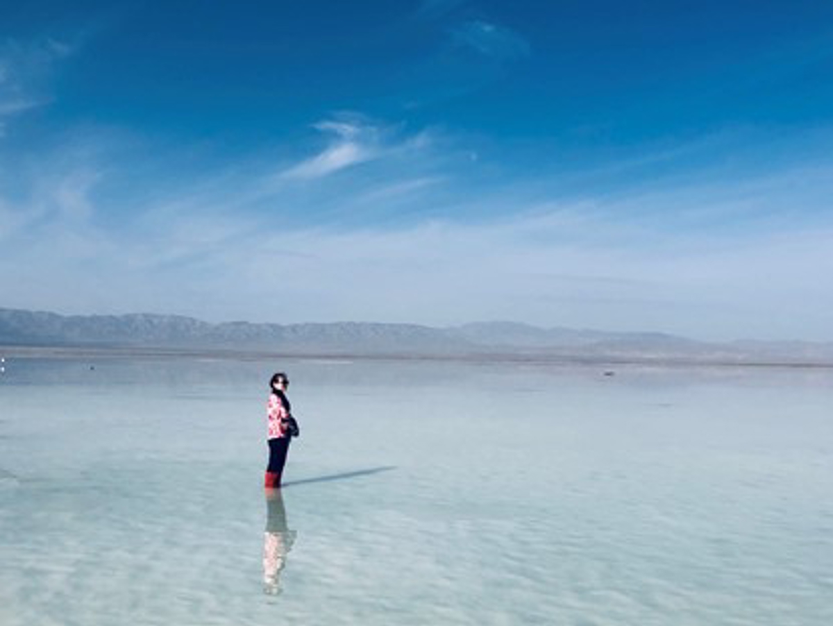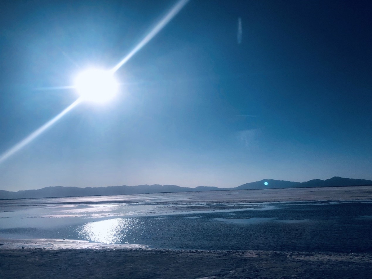 Since sunset isn't until 8:30 PM in these parts, we had time to visit Chaka Sky No.1 (茶卡天空壹号), a newer scenic area about 20km from Chaka Salt Lake (茶卡盐湖). Similar to the famous salt lake but less crowded. We walked through the quiet train parked in the middle of the lake - hauntingly beautiful.