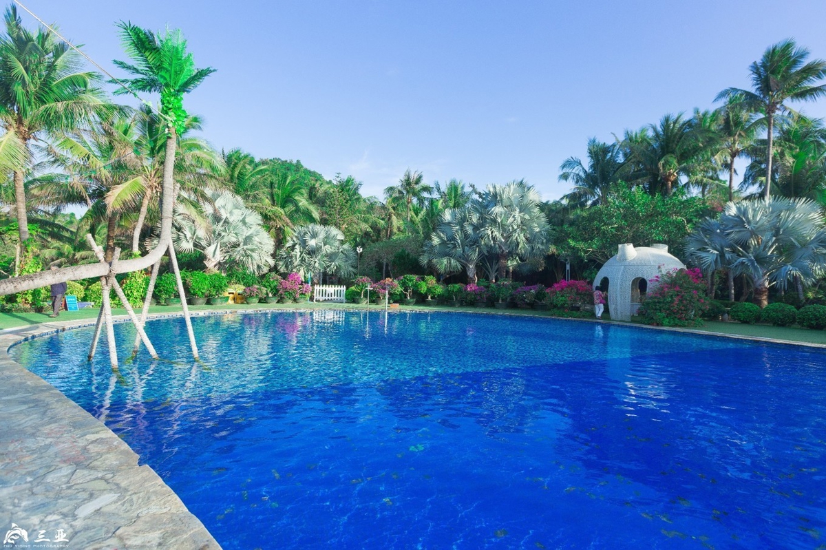 Then we found it—the iconic location from the movie. Stepping into this scene felt like entering another world entirely. Bougainvillea bloomed in vibrant pinks and purples, a pristine swimming pool reflected the sky, and coconut palms swayed overhead. The familiar setting triggered memories of the film—Ge You before his famous "Ge You Slouch," Bai Baihe and Li Xiaolu before their controversies, Zheng Kai when he was still "the little leopard." Time changes people, but this landscape remains faithful and beautiful.