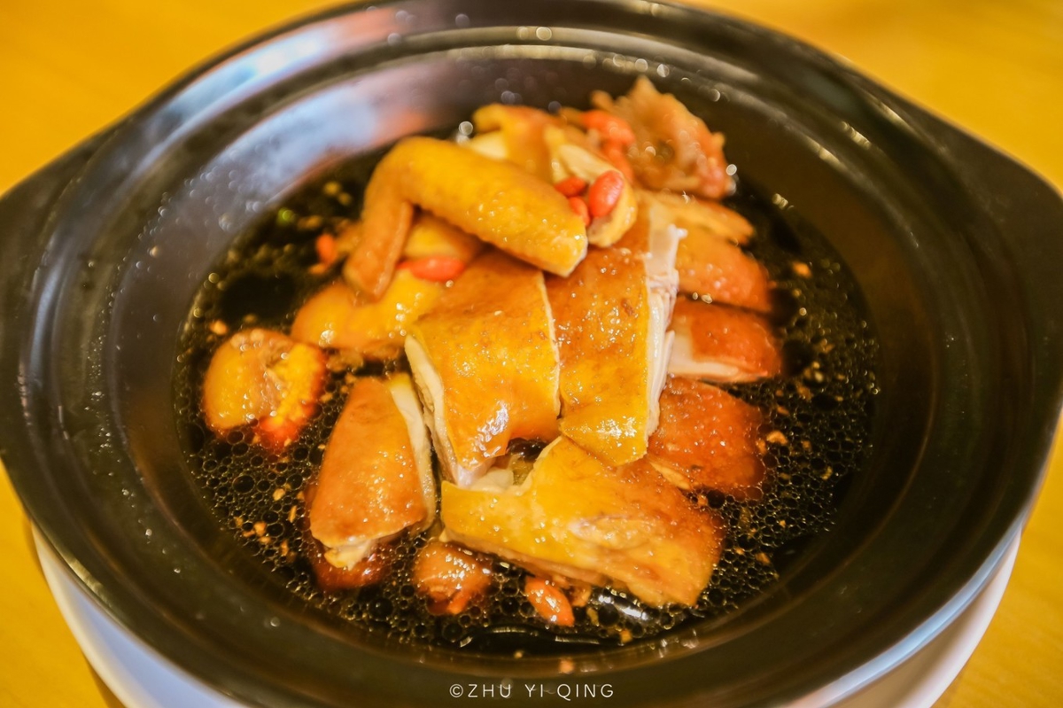 The white-cut Wenchang chicken (白切文昌鸡, Báiqiē Wénchāng Jī)—a favorite of screenwriter Ning Caishen—featured silky skin and firm, chewy meat. Wenchang chicken represents one of Hainan's four famous dishes, raised in the Wenchang region known for its free-range poultry.