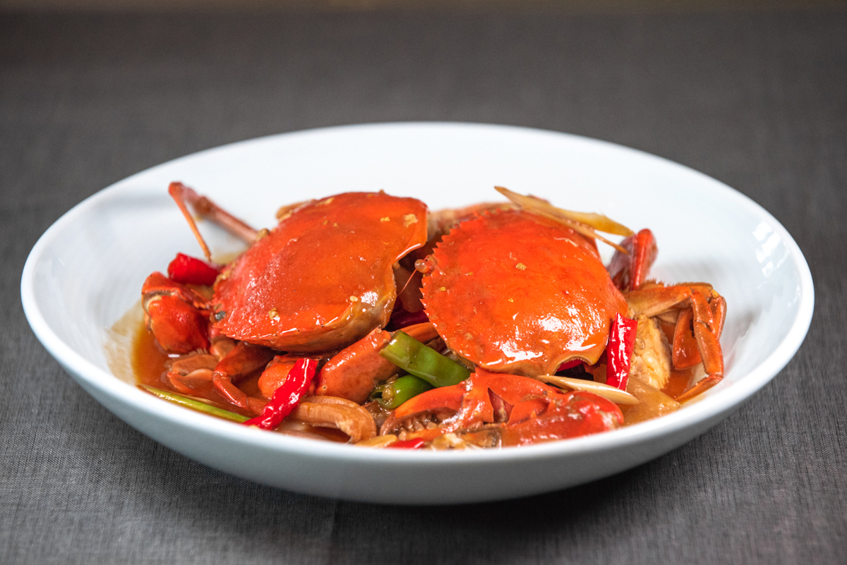 Nanyang-style crab (南洋风味蟹), another of Hainan's four famous dishes, featured plump crab roe and perfectly spiced, mildly hot seasoning.