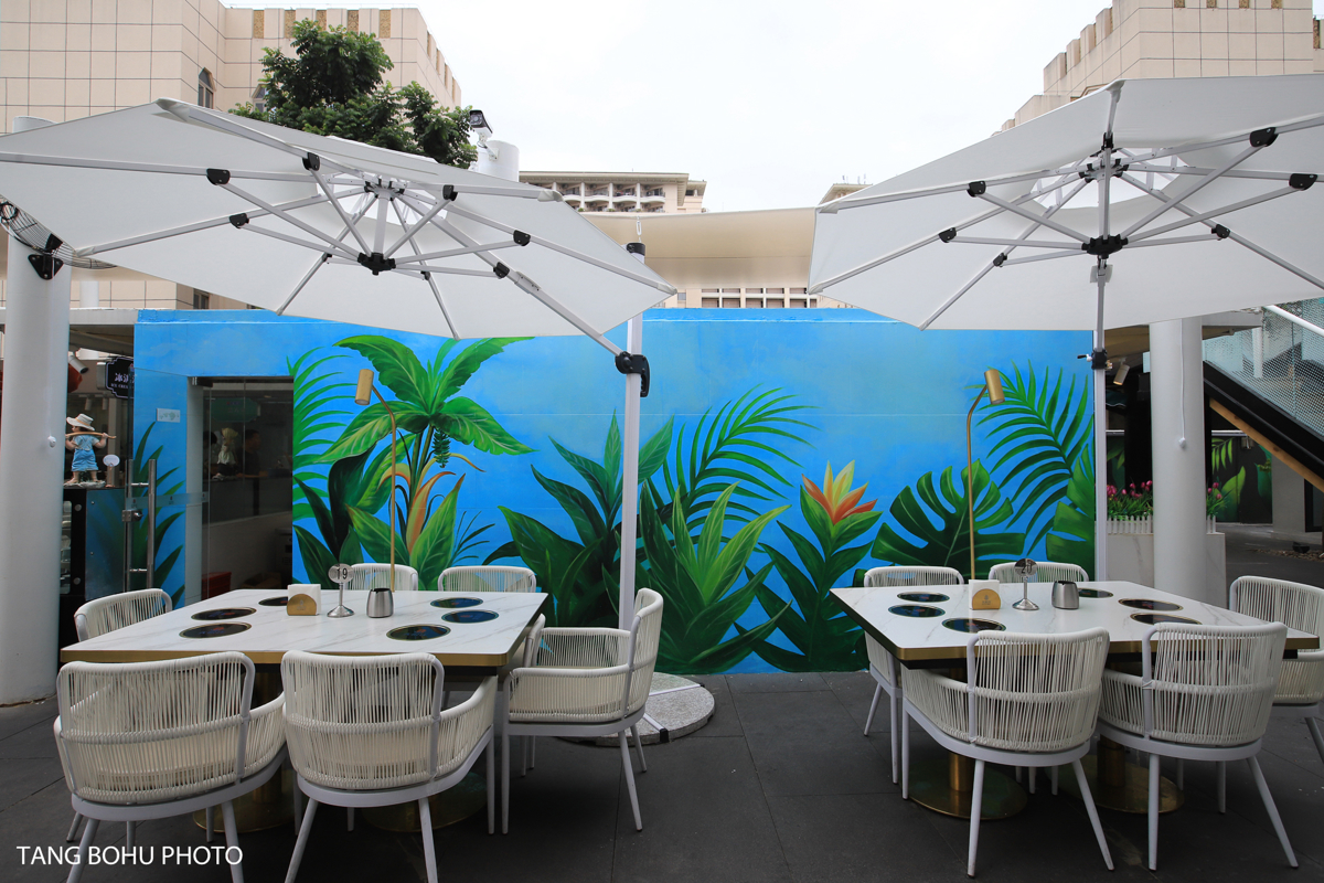 No trip to Sanya is complete without indulging in its incredible seafood, and I found my paradise at Dayangyang Rainforest Restaurant (Dà Yáng Yáng Yǔlín Cāntīng) in Haijiao Courtyard. This isn't your typical buffet—it's an outdoor dining experience surrounded by tropical gardens, flowing water features, and coconut palms swaying overhead.