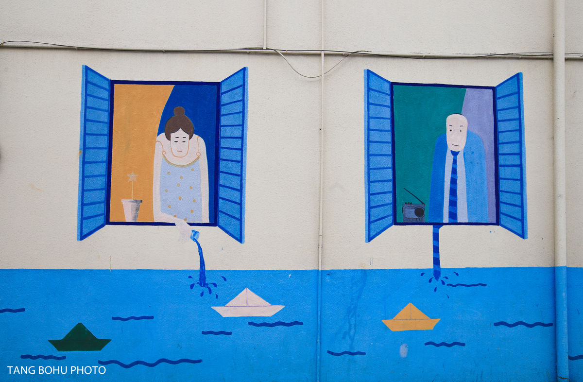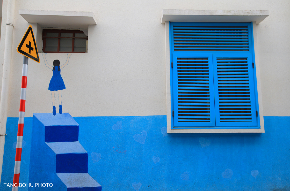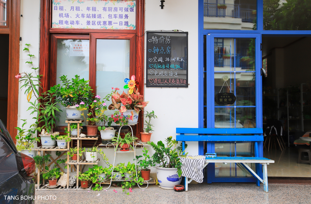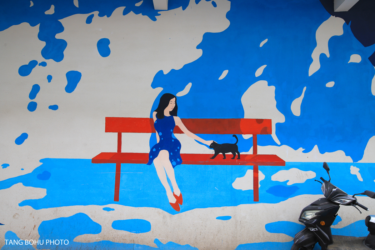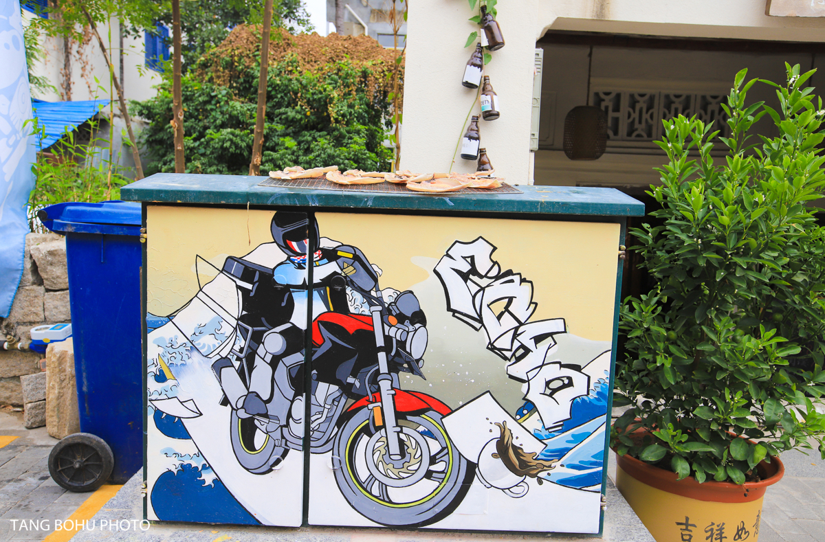 Tianya Town wasn't always this picturesque. The village underwent a major renovation, with all buildings repainted in the signature blue-and-white palette. As I walked along the streets, I noticed how the uniform color scheme created a serene, almost ethereal atmosphere. Street art and murals added splashes of color to the whitewashed walls.