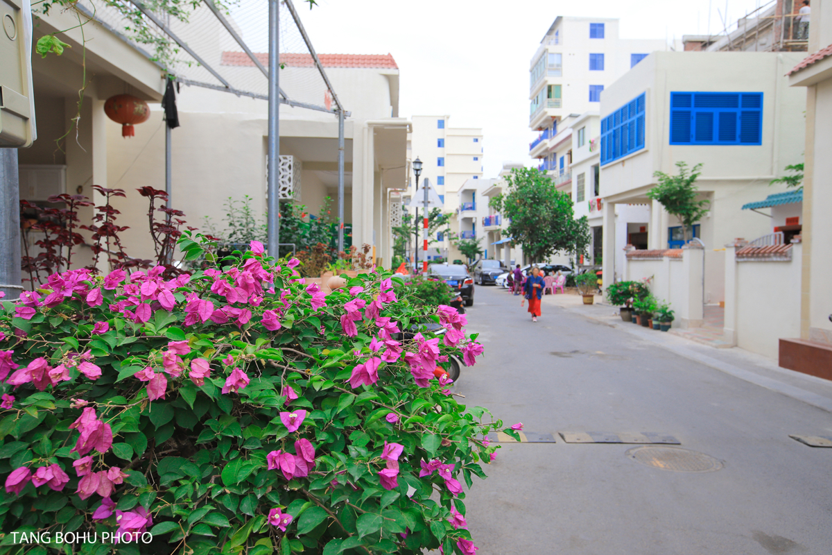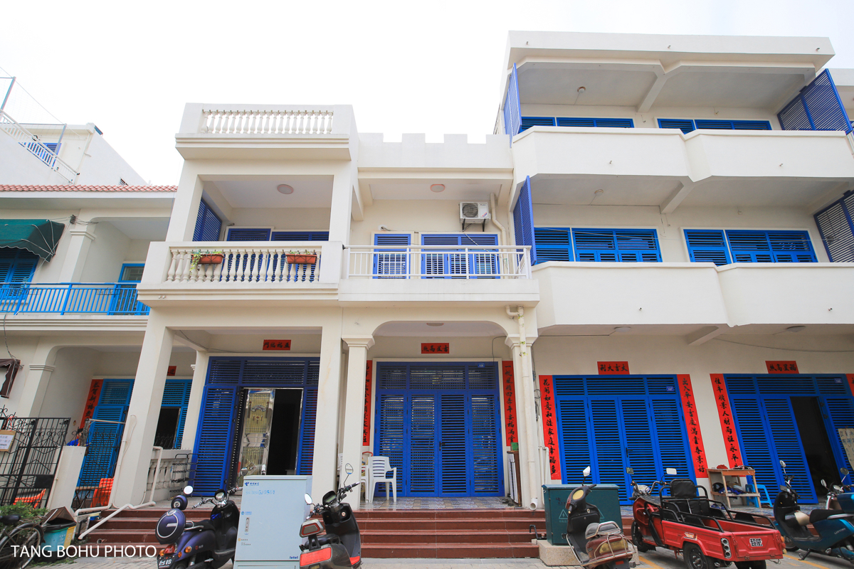 Following the narrow lanes toward the sea, I passed rows of matching white houses with blue trim. Each street leads to the ocean—Honglong Street, Huanglong Street, and several others—all running parallel to the coastline. The layout is simple: if you walk toward the water, you'll eventually hit the beach. I couldn't help but feel I'd stumbled onto a Mediterranean film set.
