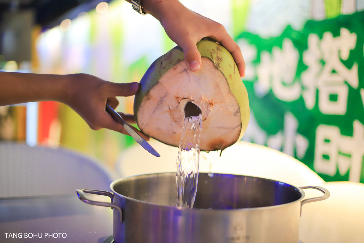 This dish can be enjoyed year-round since coconut chicken hot pot is considered nourishing and won't cause 'internal heat' according to traditional Chinese medicine. The restaurant uses fresh Wenchang chicken, a famous Hainan breed, cooked in a broth made from young coconut water. After just three minutes of simmering, the chicken is ready—tender, sweet, and incredibly flavorful.