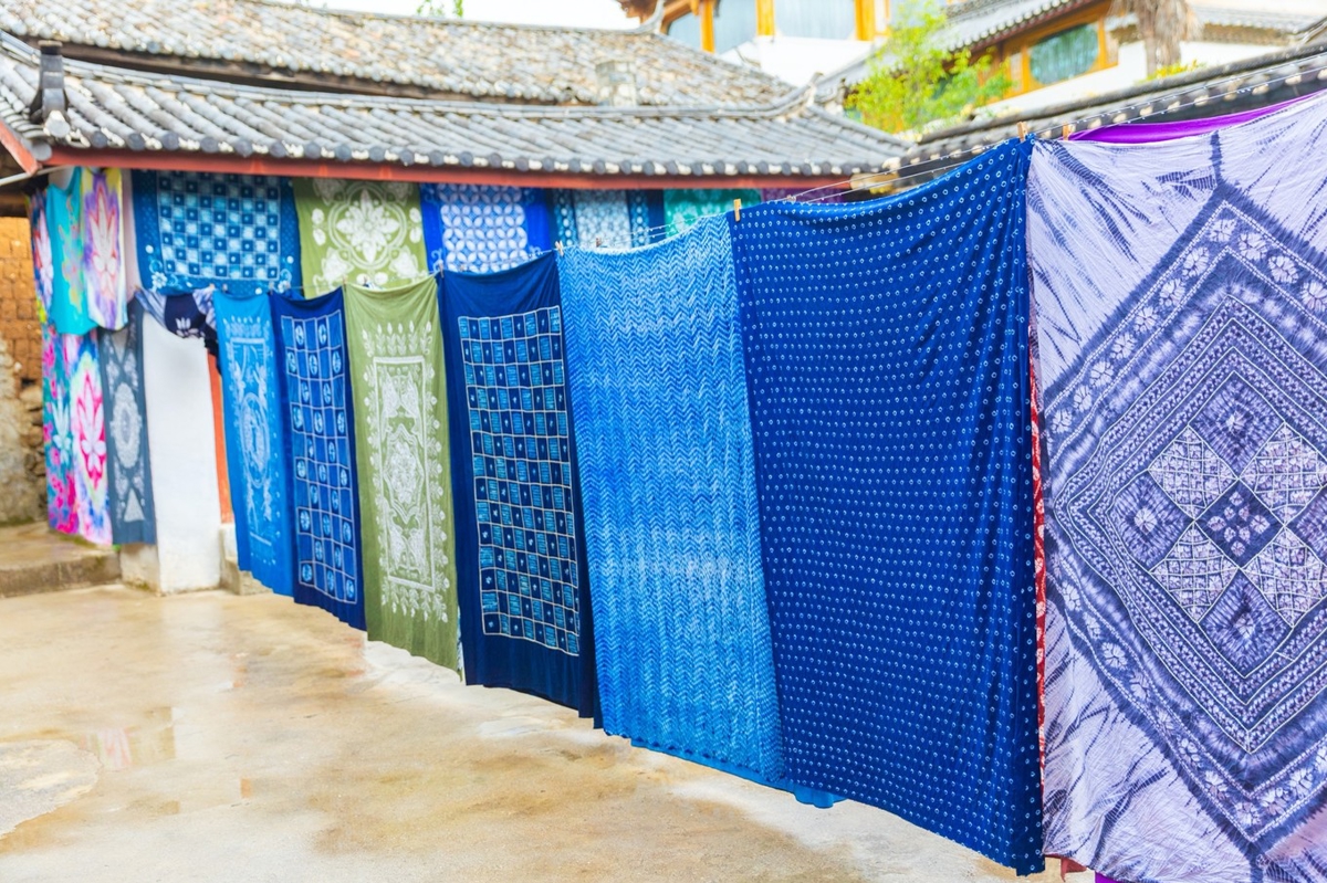 Walking along, I arrived at a tie-dye workshop. The open courtyard had various tie-dye cloths drying in the sun. I slipped inside to take a photo and chatted with the elders in the yard.