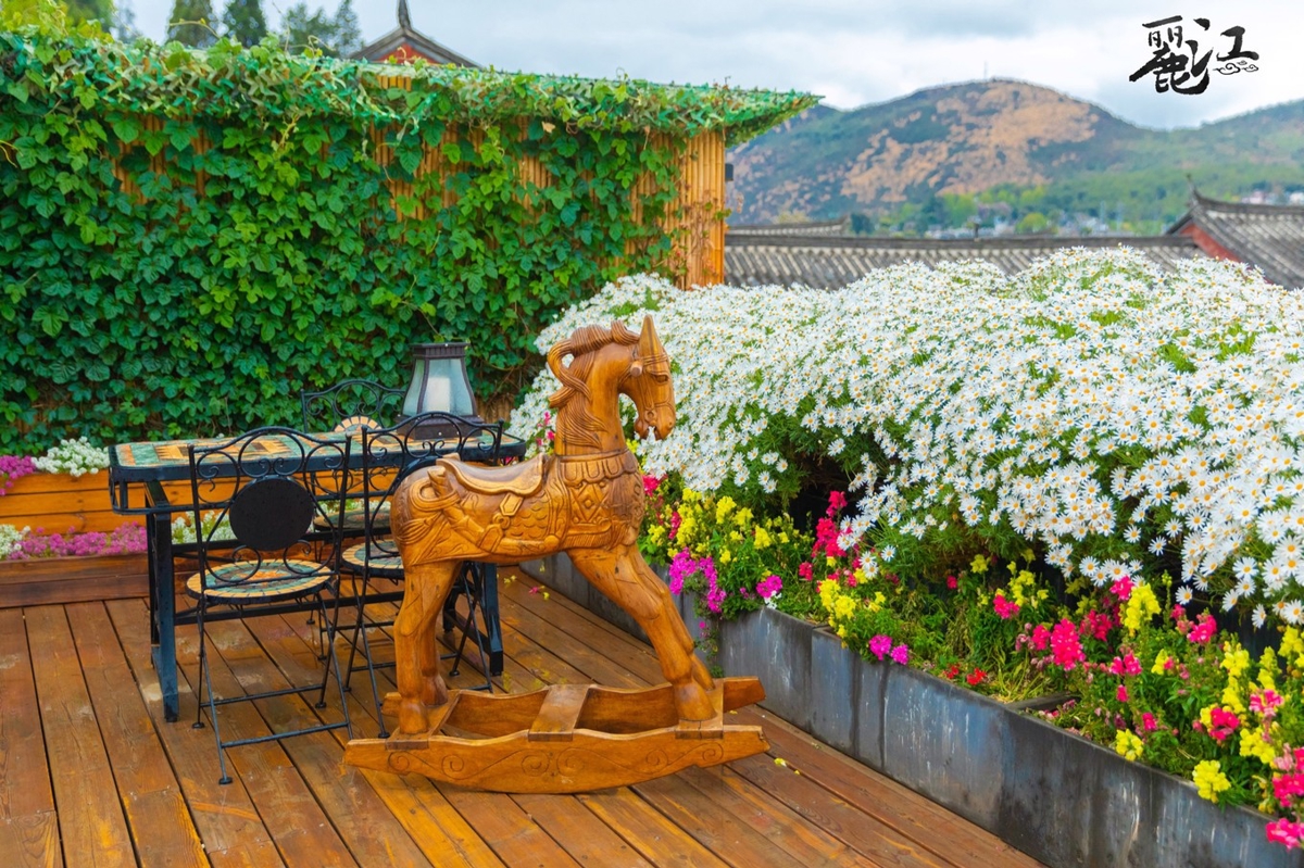 Walking into the inn, there's a错觉 (illusion) of entering a garden—flower fragrance fills the air, colorful flowers compete to bloom. Such a flower-themed courtyard, which beauty lover wouldn't adore it?