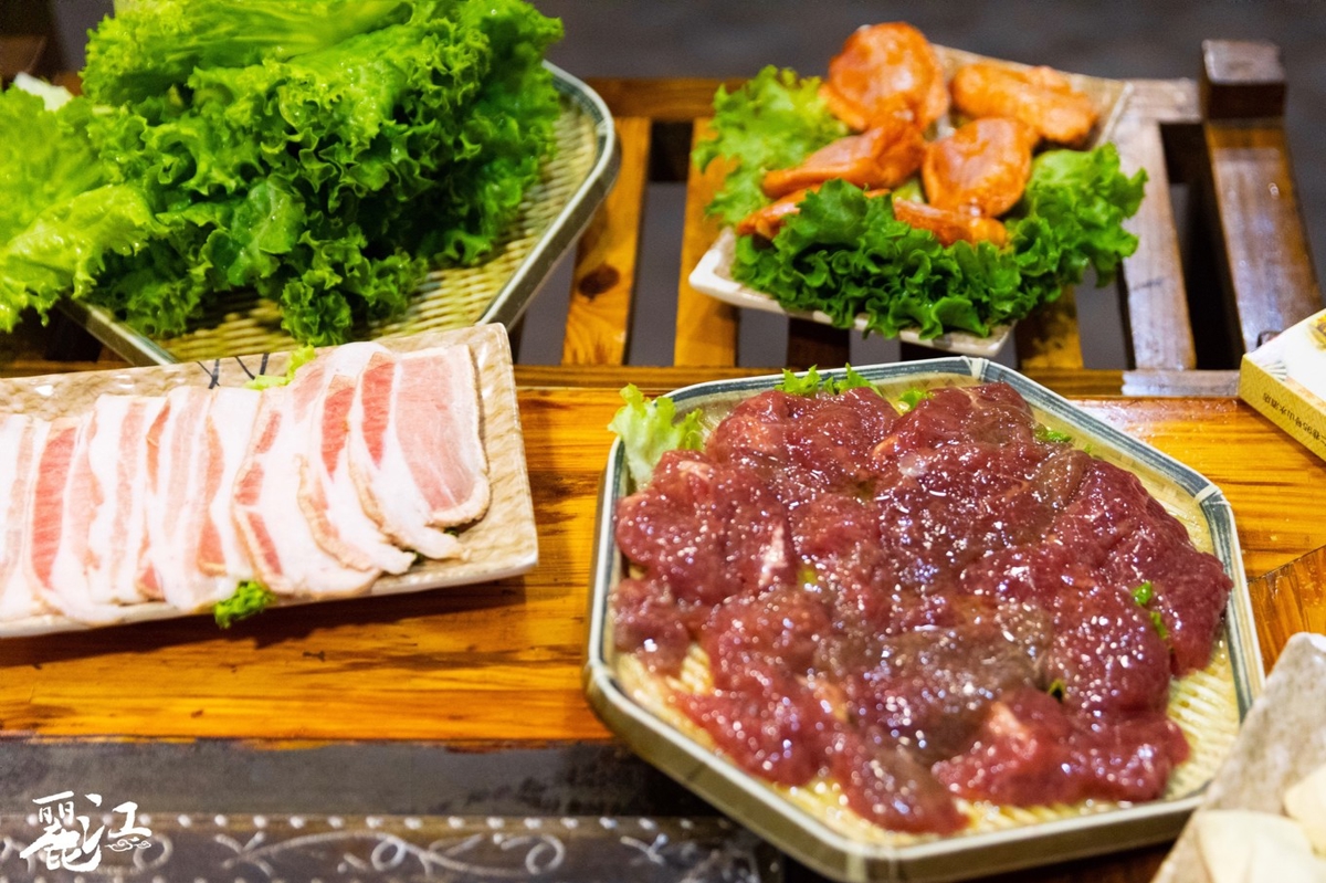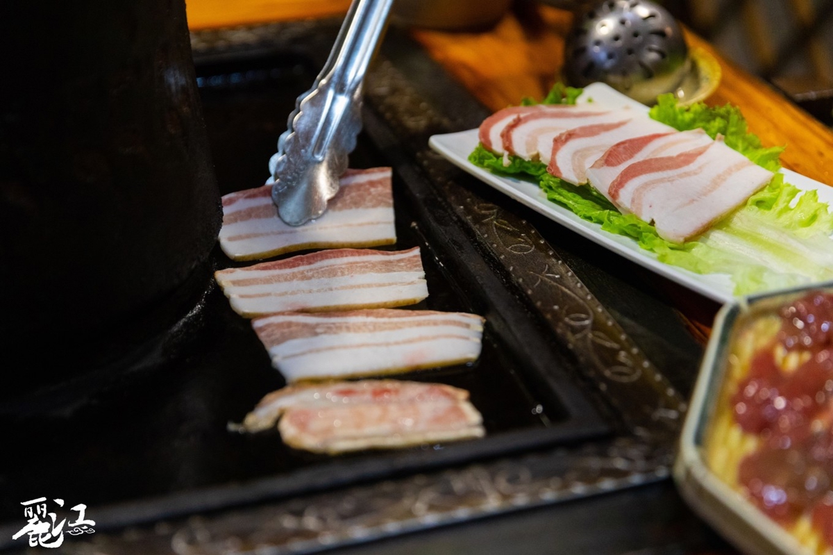 Around the stone pot chicken is stone pot barbecue—you can grill pork belly, beef, chicken wings, and more. The waiters are very attentive, afraid we wouldn't know how to grill, so they serve the entire process.