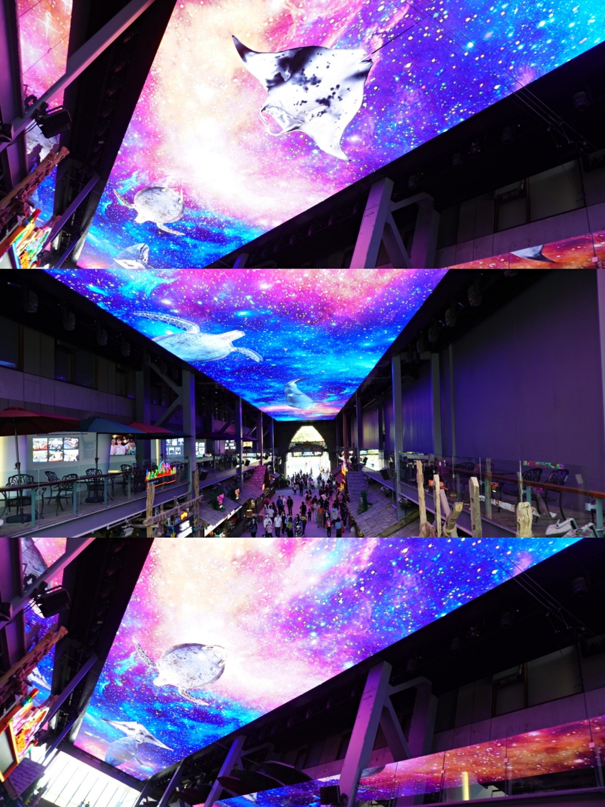 Floor 1: Ghost Ship, War Zone, Costume Change Museum, Theatre 5 (Samba Passion), Theatre 2 (WA! Dinosaurs), Magic Street, Sky Screen, Food Court, Restaurants