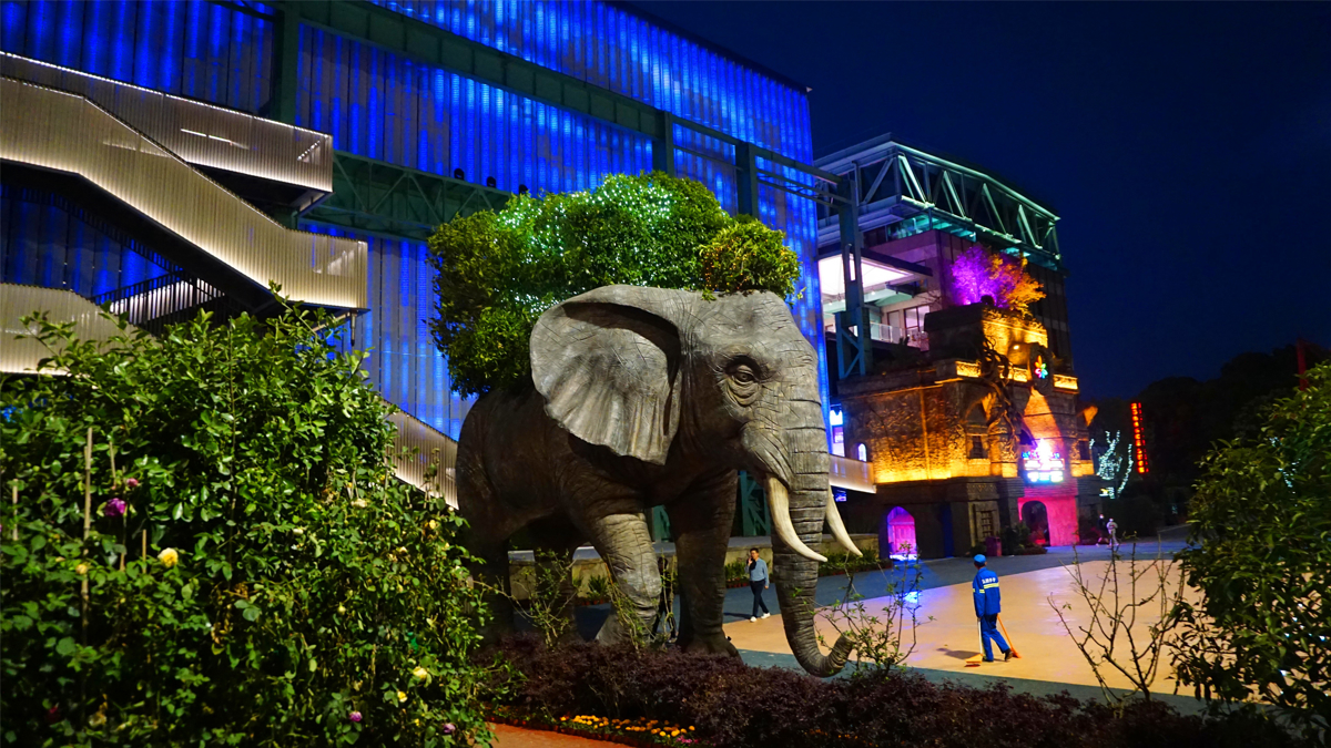 By the time I left, night had fallen. Shanghai Songcheng glowed beautifully under blue lighting, and I even spotted a massive elephant trunk sculpture. What a perfect ending to an amazing day!