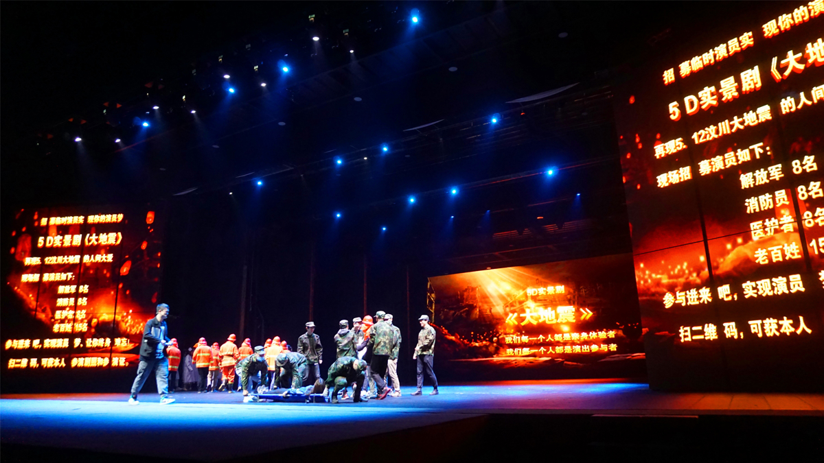 Then it was time for another show—"The Great Earthquake" at Theater 2 on the first floor. What makes this performance special is that it's not just a show; audience members can actually participate in the performance. But when it started, I was immediately moved to tears. The 2008 Wenchuan earthquake—memories of that tragedy felt as vivid as yesterday.