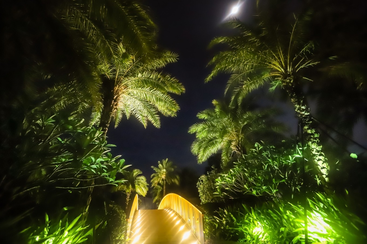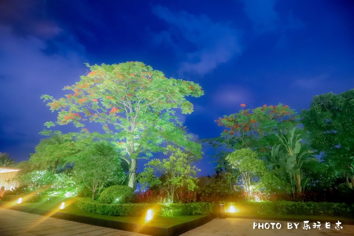 The Southeast Asian-style gardens look stunning from any angle! The night views are equally captivating, with unique lighting blending with water features, making the garden scenery even more magnificent.
