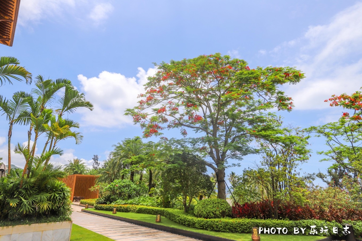 The hotel's landscaping is exceptional, featuring Southeast Asian tropical plants arranged around Dapeng's "mountains and sea" theme. The boundary-less design creates a relaxing atmosphere that feels completely natural.