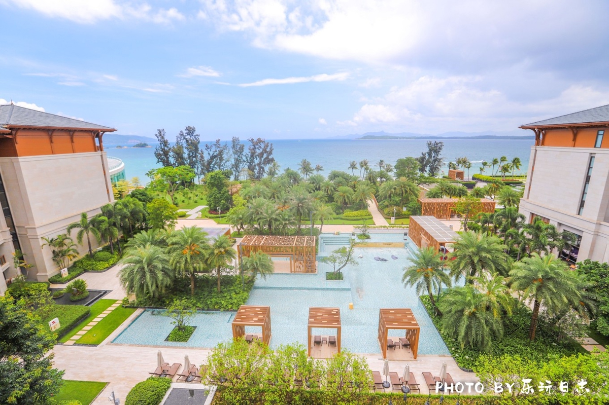 Every corner offers photo opportunities—original sculptures and structures scattered "casually" throughout, though clearly positioned by designers who knew exactly how to showcase them. Buildings, pools, and terraces hide beneath tall palm trees, blending seamlessly with Jinsha Bay's natural landscape. Swimming here is pure bliss.