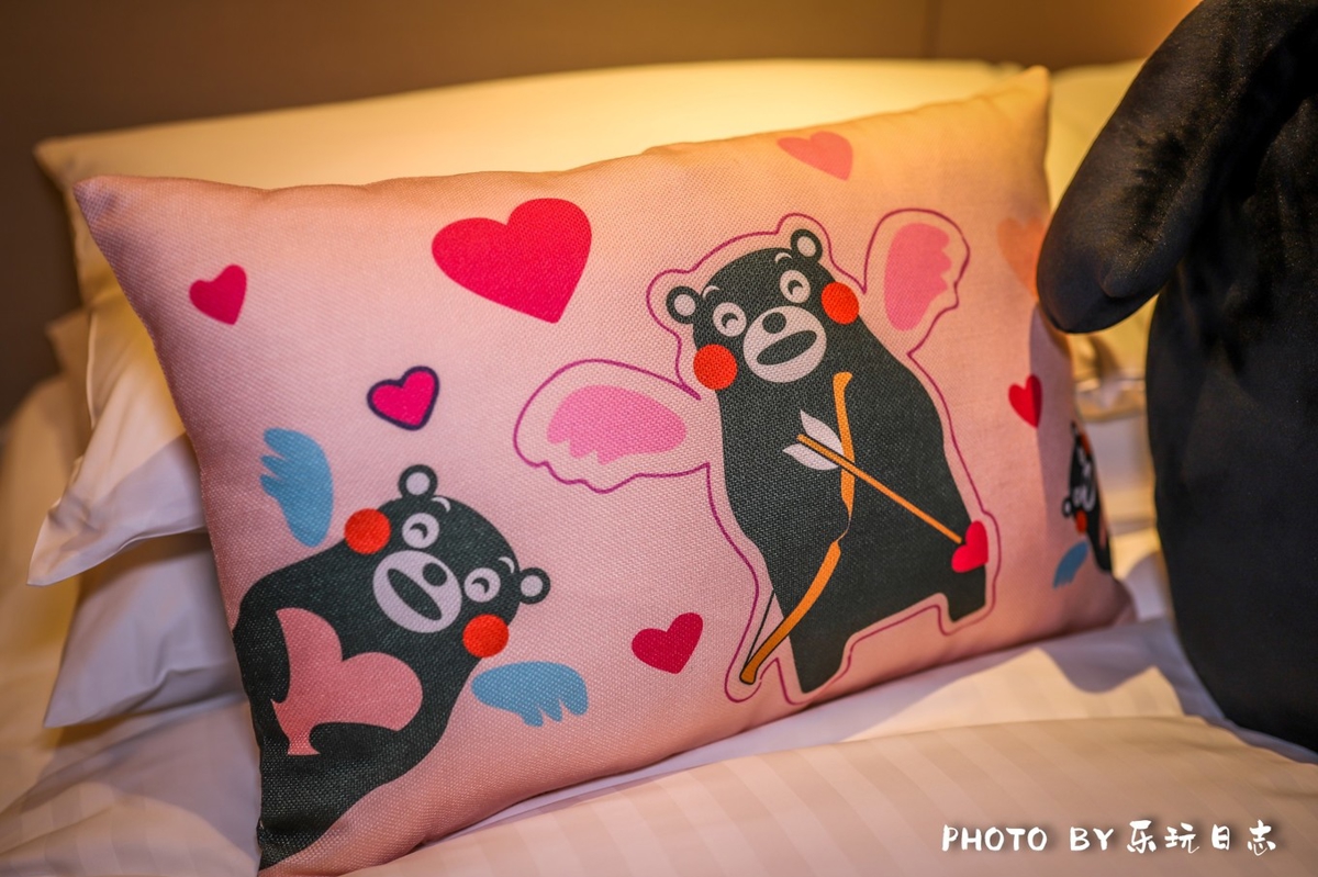 The thematic elements extended to every corner—alarm clocks, bedside lamps, and even the pink pillowcases featured Kumamon's iconic image. Through carefully arranged glass decals, paper-cut decorations, and dreamy wall murals, the designers had successfully transported us into Kumamon's world.