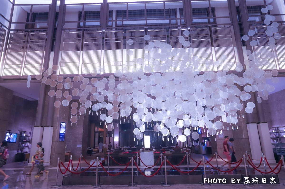 Back in the hotel lobby, I was struck by the beautiful collision between traditional culture and modern art. The lobby features warm, bright lighting with suspended spherical lamps and geometric decorations, creating a vacation atmosphere that immediately puts guests at ease.