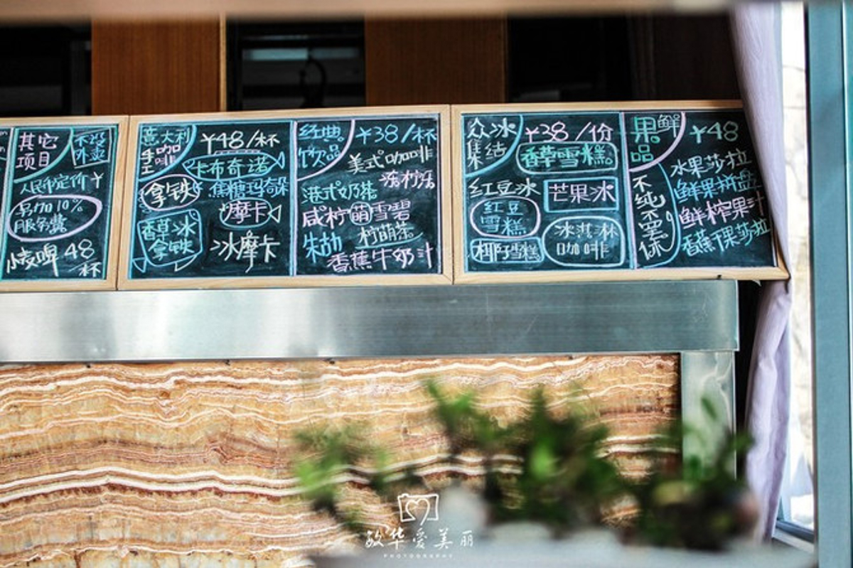 The western restaurant is the perfect spot for afternoon tea and enjoying a beautiful afternoon. The interior is simple and fresh, specializing in light meals, desserts, coffee, and flower/fruit teas. The menu is hand-drawn on a blackboard in chalk—full of character. A few potted plants bring a vibrant touch of green.