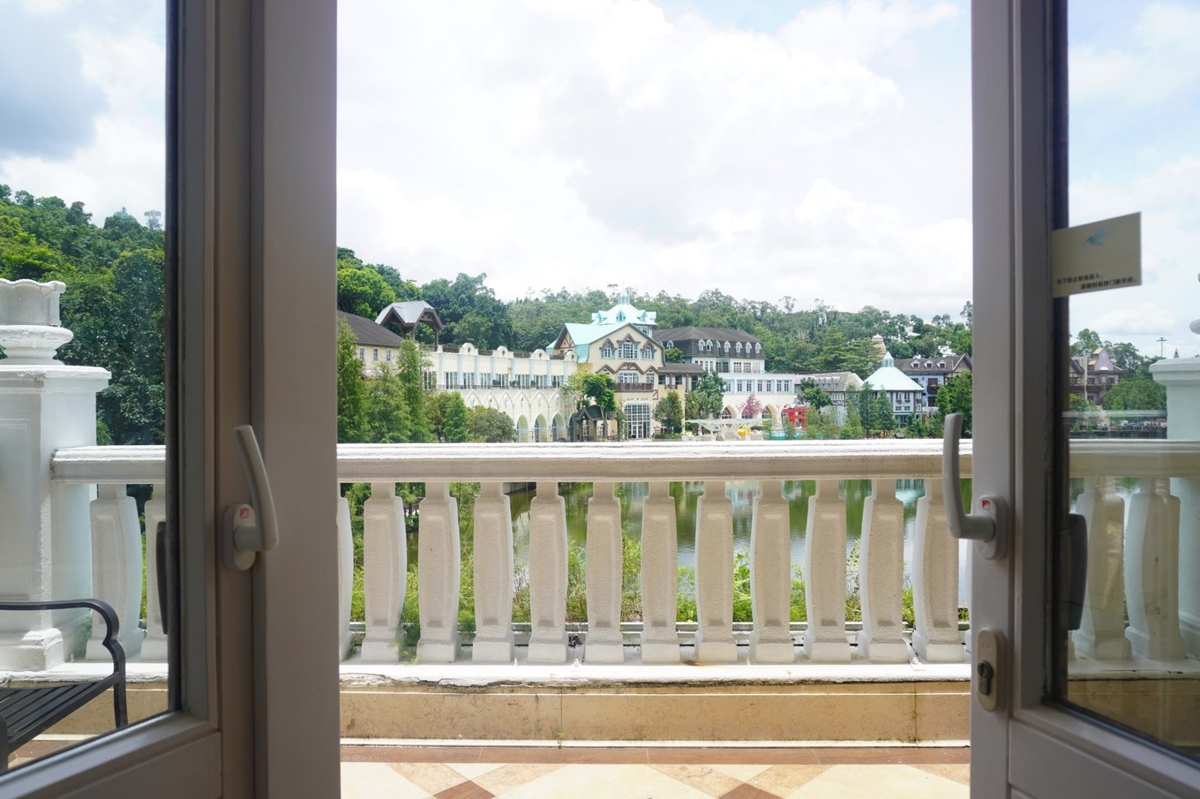 Entering the lobby, we were welcomed by cheerful bird songs. Everywhere you look are flower-themed designs—comfortable and inviting. Under the clear sky, this place feels like a hidden paradise. Fresh air, and the Interlaken Hotel is right next to the Tea Valley (茶溪谷) scenic area. The spacious rooms with their large balconies facing the beautiful, peaceful lake view—waking up to birds chirping is pure bliss.