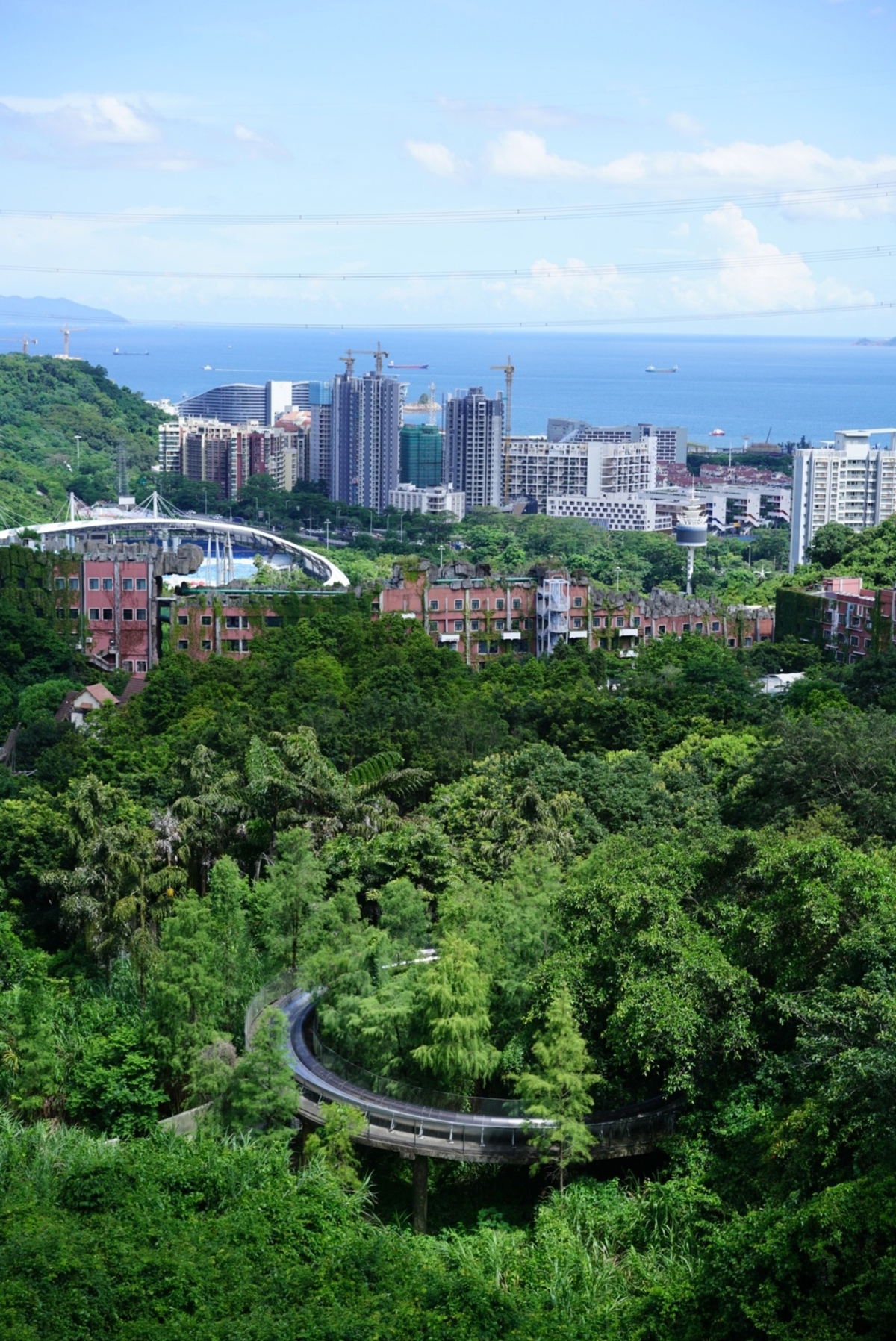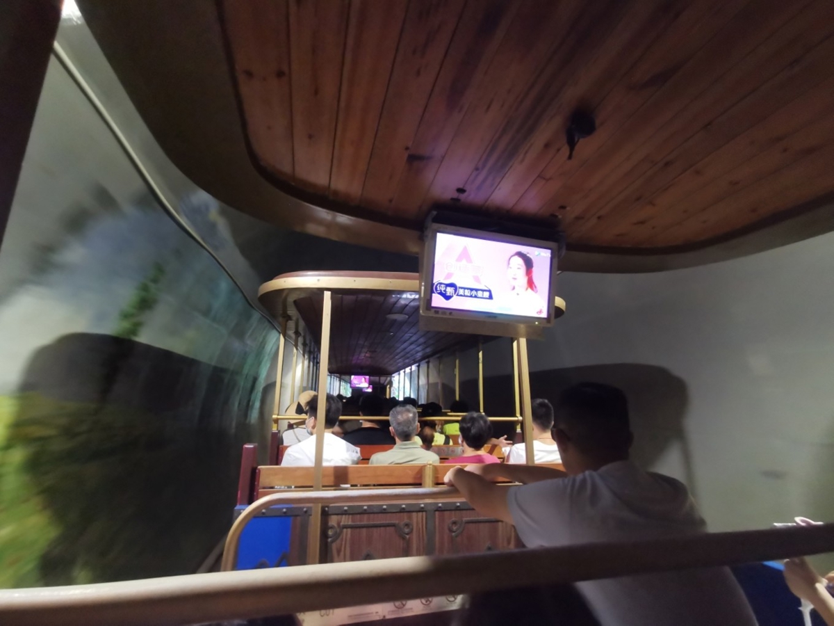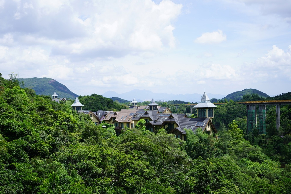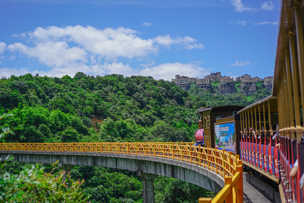My favorite is riding the mini train, enjoying the lake and mountain scenery while it circles around the entire Window of the World (东部华侨城) hotel area. It's like being in Europe—the 40-minute aerial journey is so peaceful and relaxing. That's why my family says the value here is amazing.