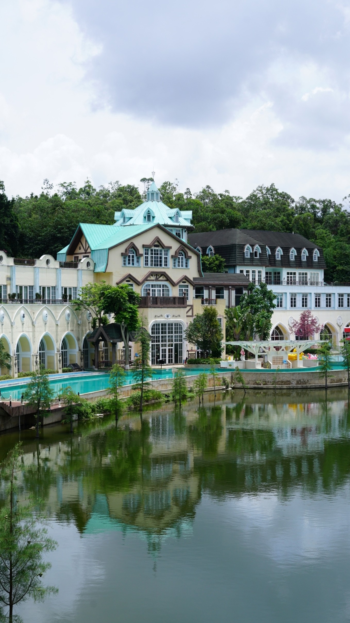 One second teleport to Europe—vacation mode activated at Interlaken Town. Watching the green mountains and clear waters, so relaxing. We brought our parents from Guangzhou, caught a ride-sharing trip, and arrived at the hotel in about 2 hours.
