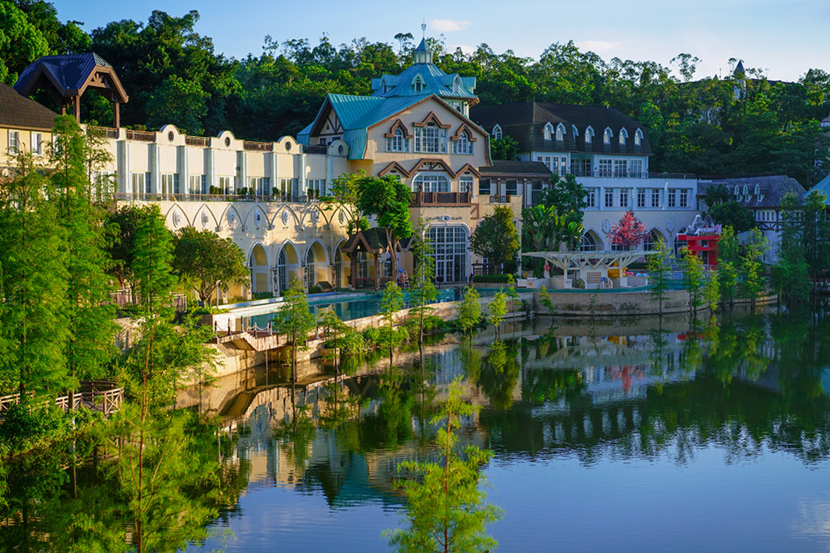 This is a Swiss-themed hotel. The bird-and-flower environment creates a natural, harmonious ecological atmosphere that makes you feel at one with nature.