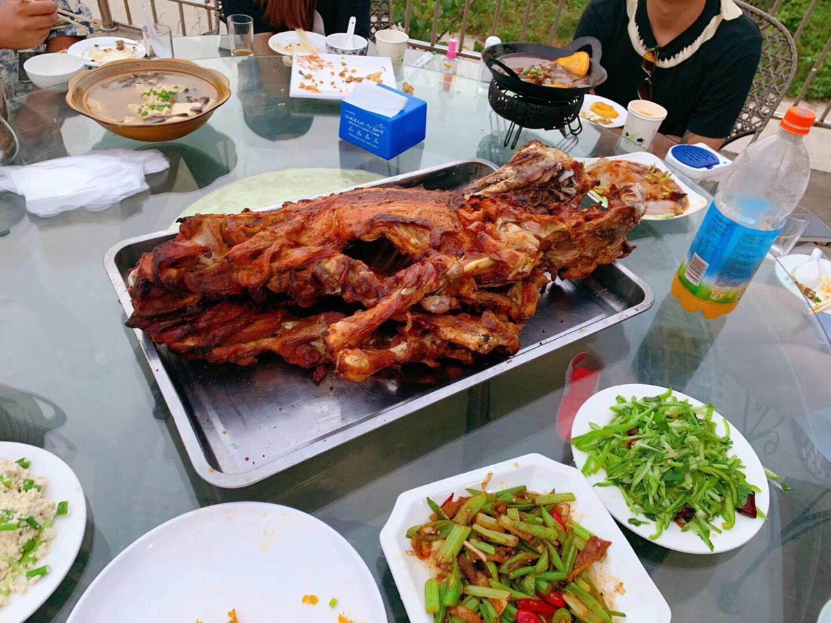 The menu reads like a greatest hits of northern Chinese rural cooking: whole roast lamb (烤全羊), rainbow trout grilled over charcoal (烤虹鳟鱼), iron-pot stewed sturgeon (铁锅炖鲟鱼), and free-range chicken braised with wild mushrooms (柴鸡炖山蘑). Every dish tastes like the mountains—earthy, honest, and intensely satisfying.