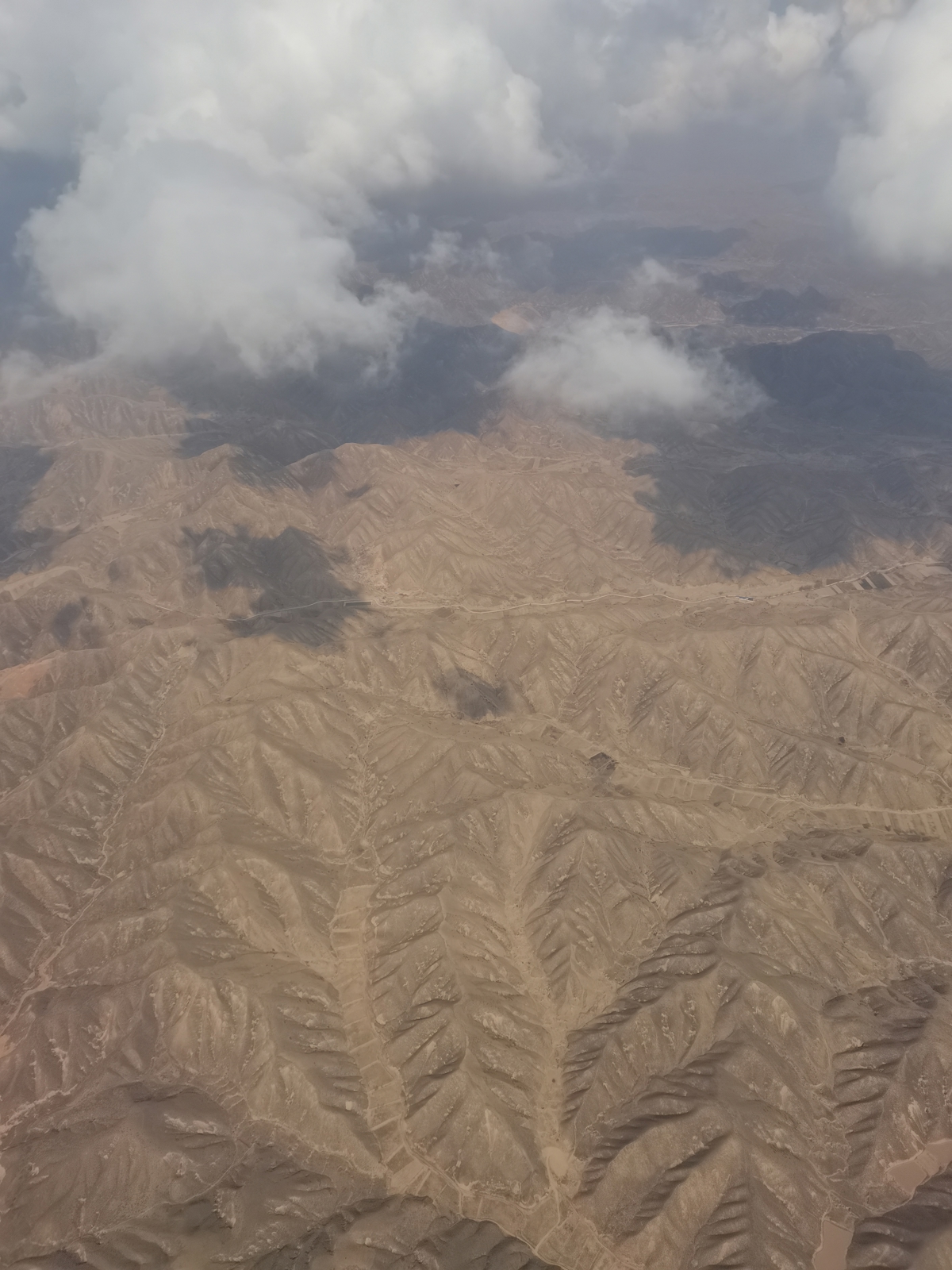 Our journey begins with a 9:20 AM flight from Xiangyang to Lanzhou. Through the airplane window, the landscape transforms dramatically—lush green Qinjling Mountains give way to the loess plateau's yellow-brown terrain. By the time we cross Xi'an, the earth below is a barren expanse of gullies and dried riverbeds. This is our preview: the next week will be dominated by yellow-brown earth tones.