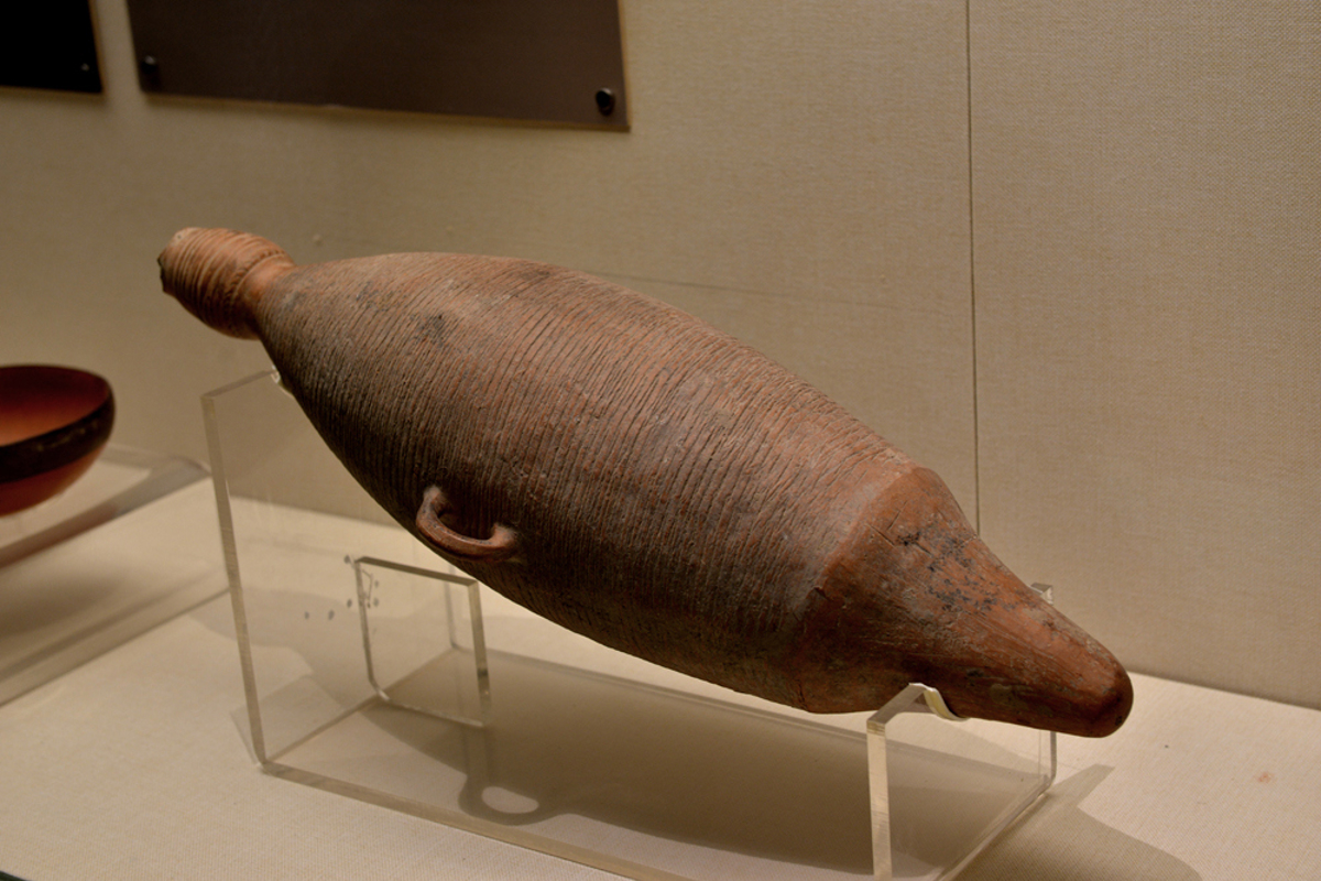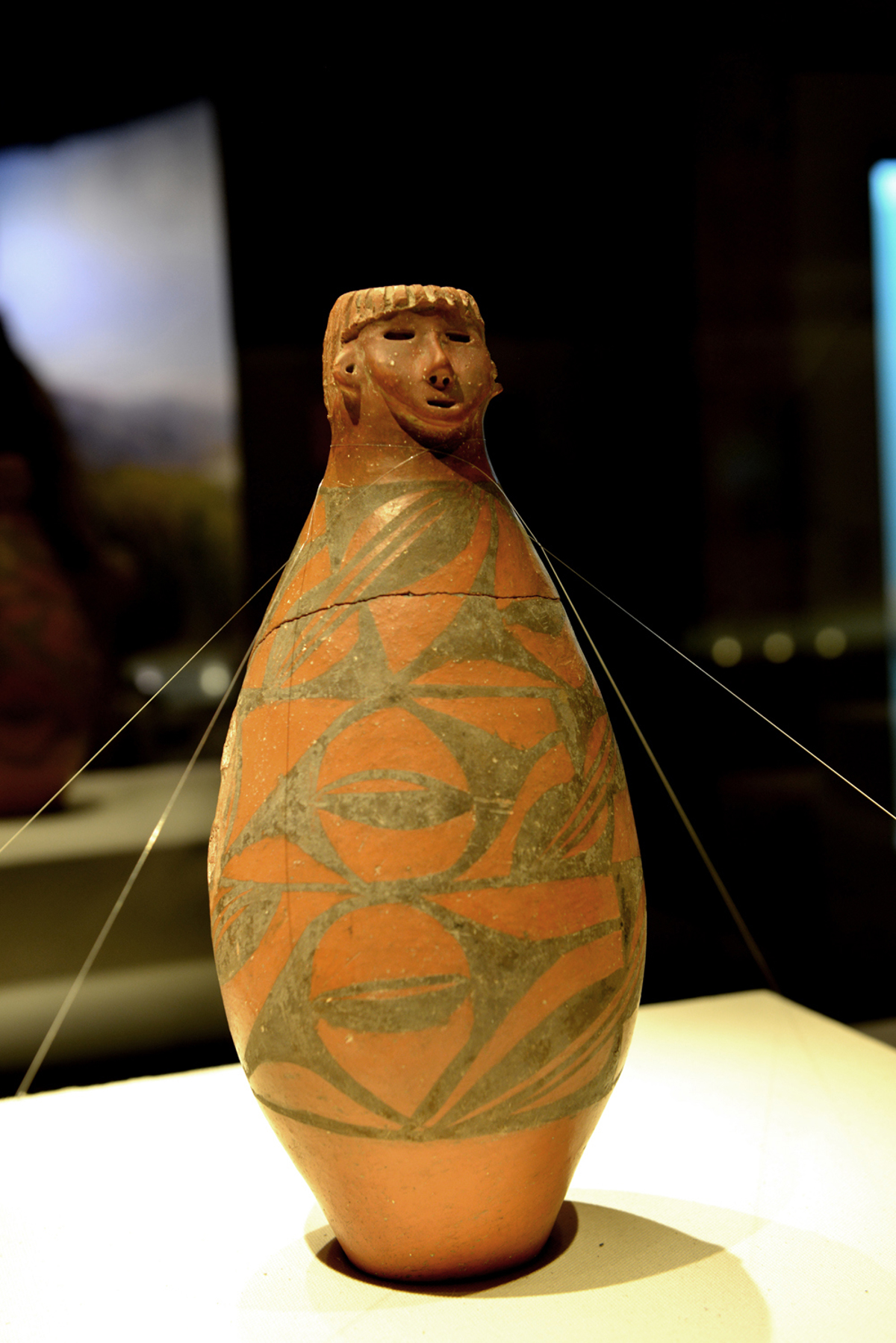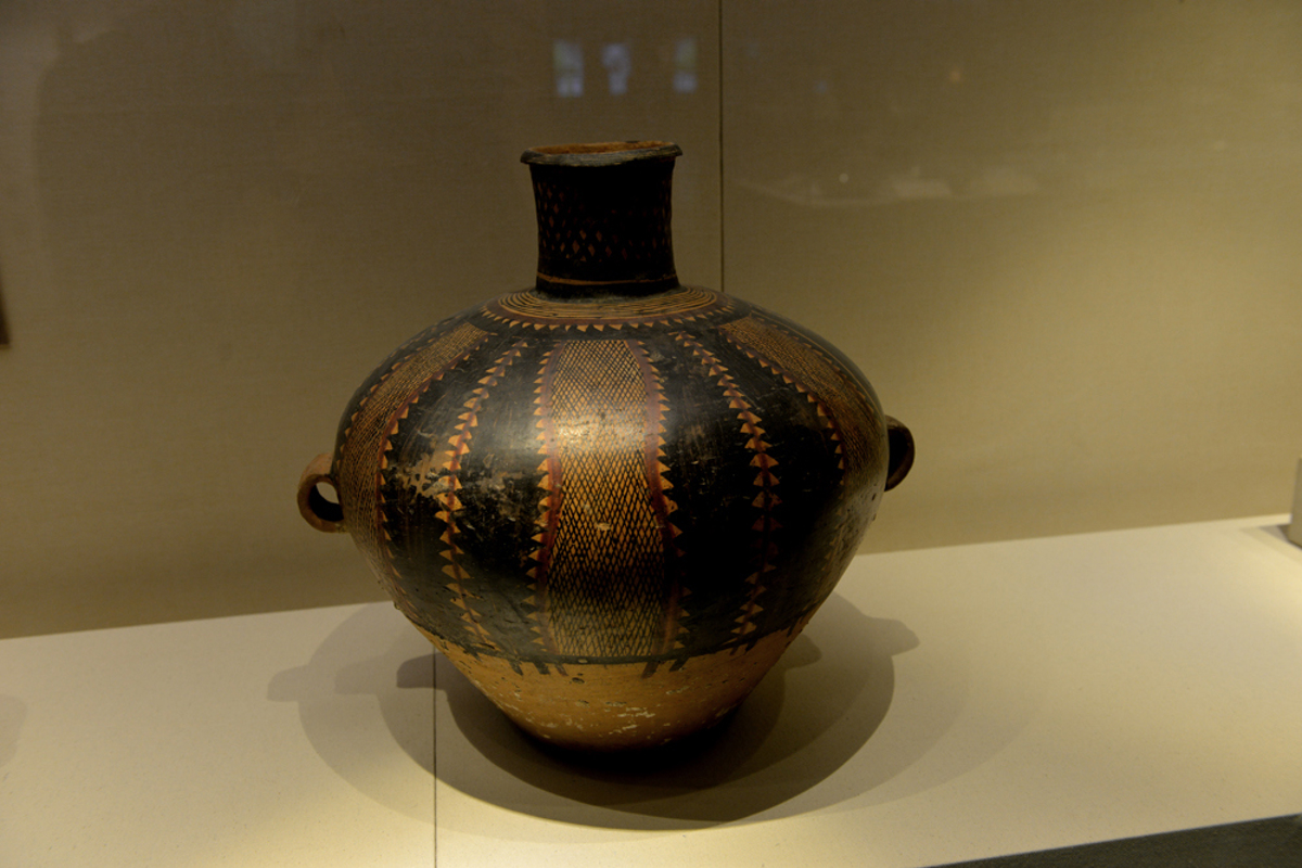 The cutest artifact: a human-faced ceramic vessel (人头形器口彩陶瓶) from the Neolithic era. With its delicate facial features, pierced ears for jewelry, and flowing hair, it looks like a teenage girl in a patterned dress. This 5,000-year-old 'Instagram moment' stole my heart.