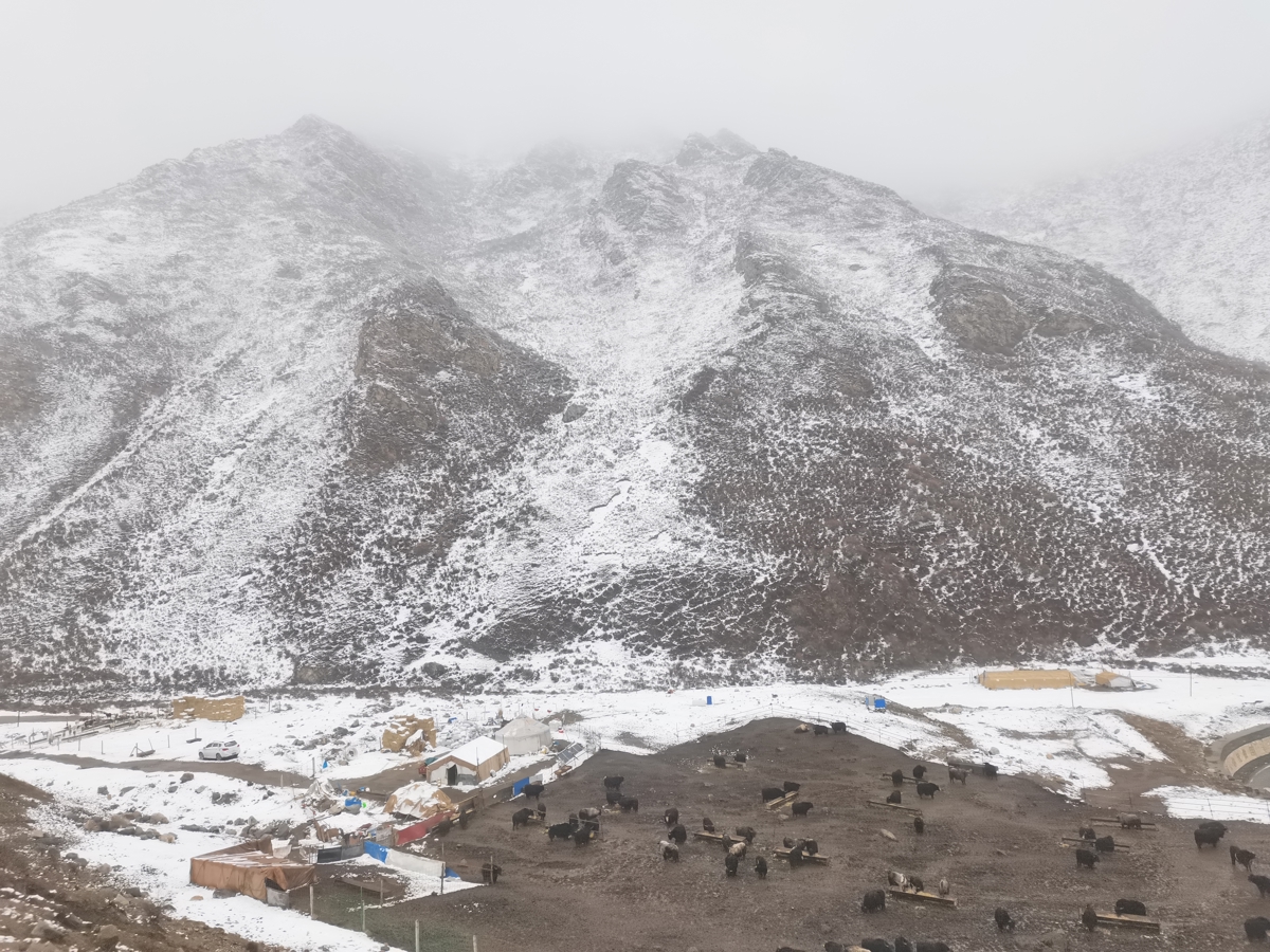 As we climb higher, temperatures drop sharply. Snow begins falling. Then someone shouts 'Snow mountain!'—and through the window, I see it: my first snow-capped peak. Pure, majestic, otherworldly. We pass yak herds, Tibetan nomad tents (government has settled them in permanent homes—good policy).