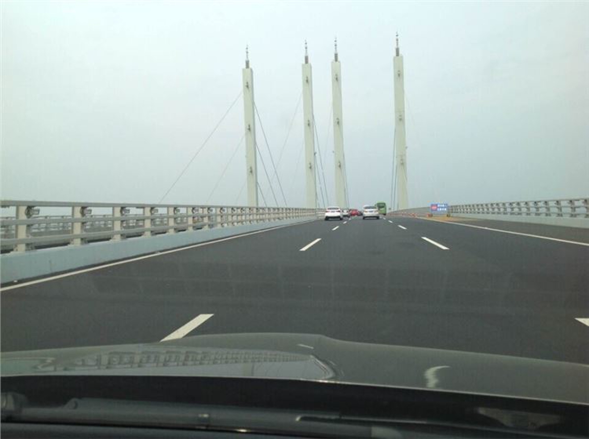 We also crossed the Jiaozhou Bay Tunnel (胶州湾海底隧道), China's longest undersea tunnel at 7,800 meters, diving 82 meters below sea level at its deepest point. How did they build this? Still amazed.