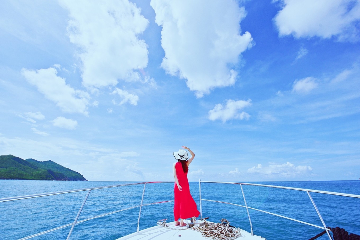 After about 20 minutes, the yacht anchors in deep water where you can try fishing, snorkeling, or striking poses at the bow—the most photogenic spot!