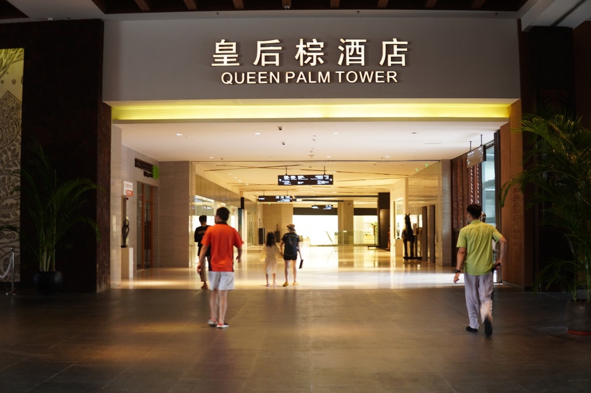 Tonight's stay: Mangrove Tree Royal Palm Hotel (红树林皇后棕酒店). This place feels like a Southeast Asian island resort—lush tropical gardens, multiple pools, and it's part of a larger complex with shopping and other hotels. Free parking (both ground and underground) is a huge plus for road trippers.