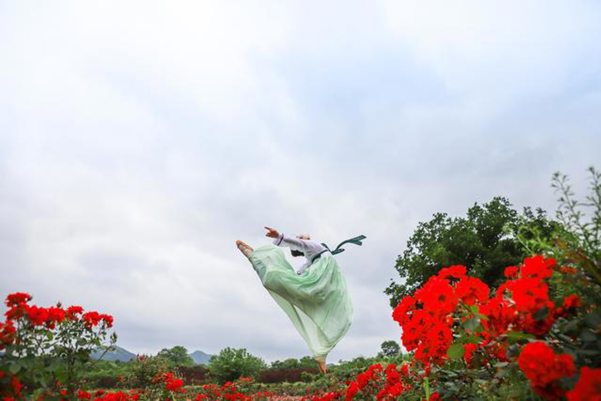 The roses in this carpet were breathtaking—red roses burning with passion, pink roses shyly blushing, yellow roses dignified and noble, white roses pure and innocent, and multi-colored roses dazzlingly brilliant. Our fellow female traveler couldn't help but dance among them.