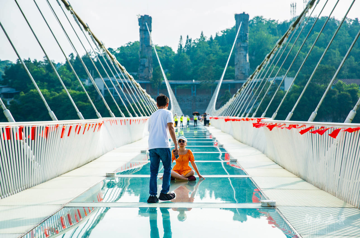 The glass bridge limits 8,000 visitors dailyIn extreme weather like heavy storms, the bridge may closeOnly wallets and phones with cases are allowed on the bridge—no other itemsThose with health issues or wearing high heels cannot board the bridge