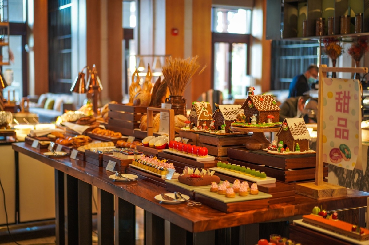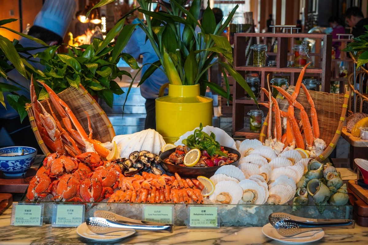 The hotel's buffet dinner is also very丰富—we went around Christmas, so the Christmas atmosphere was strong. The desserts in the dessert area all have high aesthetics and taste great. The dining area also has Buddha Jumps Over the Wall (佛跳墙) and lobster—truly sincere offerings.