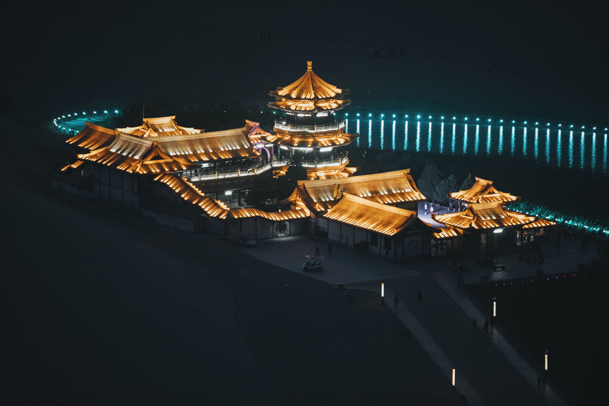 Mount Singing Sand (鸣沙山) is exactly what it sounds like—sand that "sings" when the wind moves it. Crescent Spring sits perfectly in the center, shaped like a crescent moon. For centuries, wind and sand have rushed past, yet the spring never dries. It's one of nature's most paradoxical miracles: "mountain and spring together, sand and water coexisting."