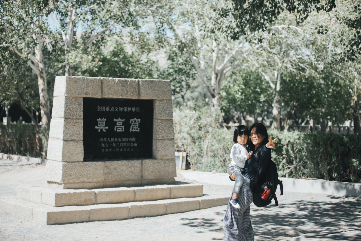 The 400+ km drive felt short thanks to family excitement and conversation. Our first stop: the Mogao Caves (莫高窟), a UNESCO World Heritage Site that's been called the "Cave of a Thousand Buddhas."