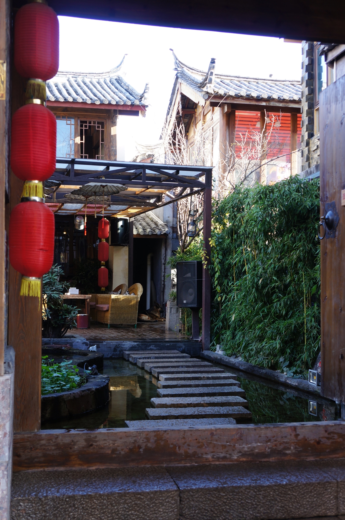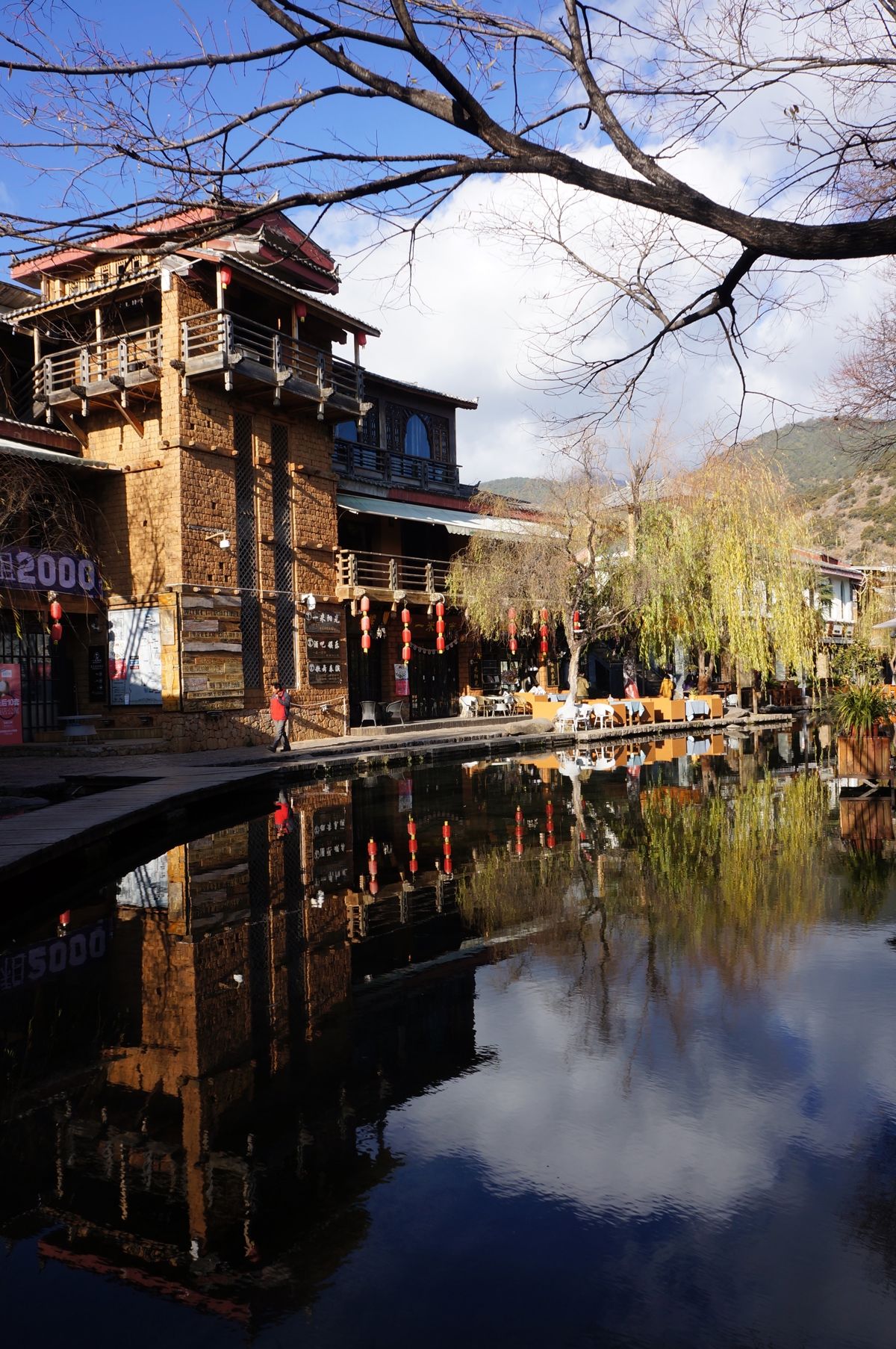 I wandered aimlessly along the stream. Shuhe was once an important station on the Tea Horse Road (茶马古道), nestled between mountains and water. I love the architecture here—every household has a courtyard with comfortable seating to sunbathe, drink tea, admire the blue sky and vibrant flowers. But when I realized most buildings are either shops or inns with artistic signs, and there aren't many original residents left, that leisure feels somewhat contrived.