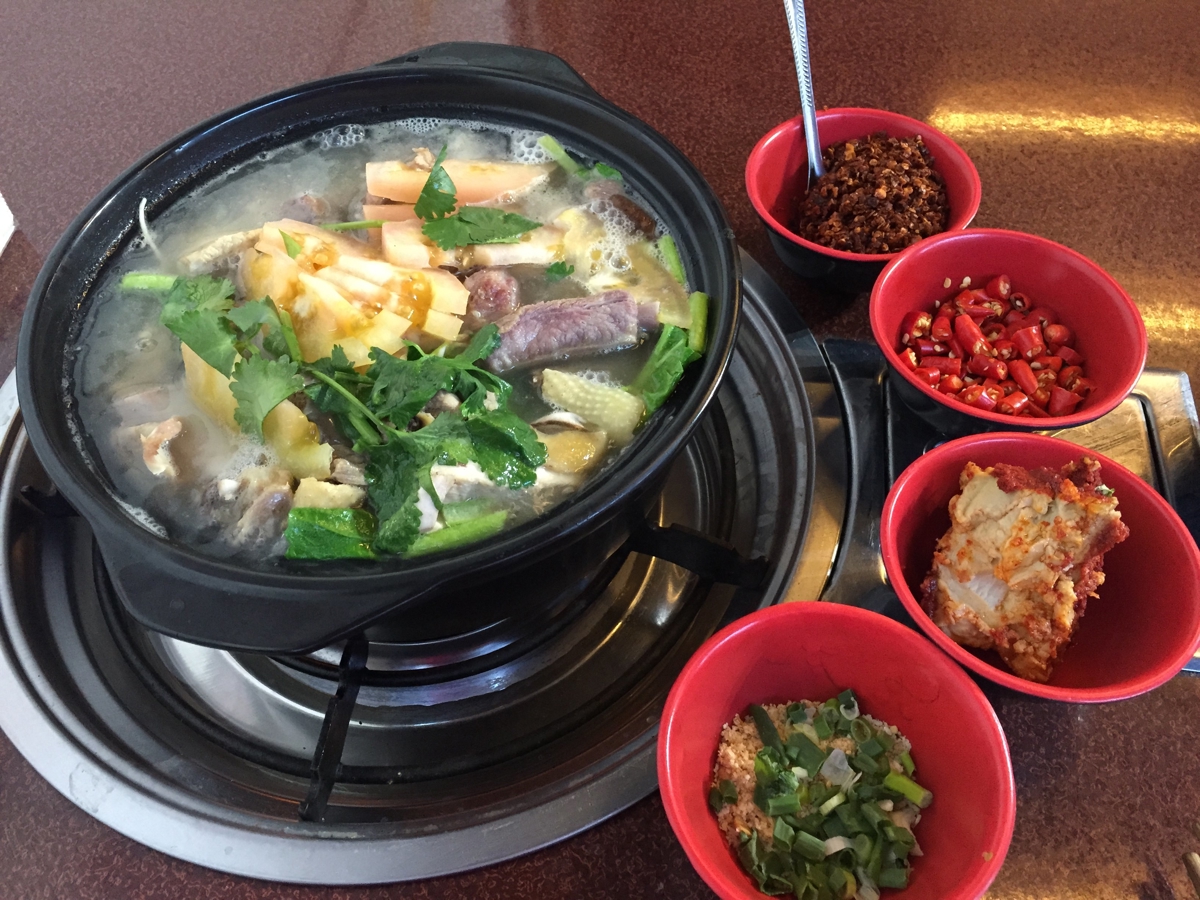 When the sun set, I went out for dinner. Not feeling well, I wanted soup—ordered local chicken soup. Yunnan cuisine tends to be salty. Having visited Yunnan several times, I'm not particularly fond of the food. Cantonese (like me) are spoiled when it comes to eating—hard to impress.