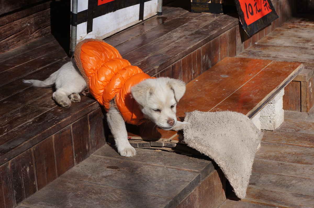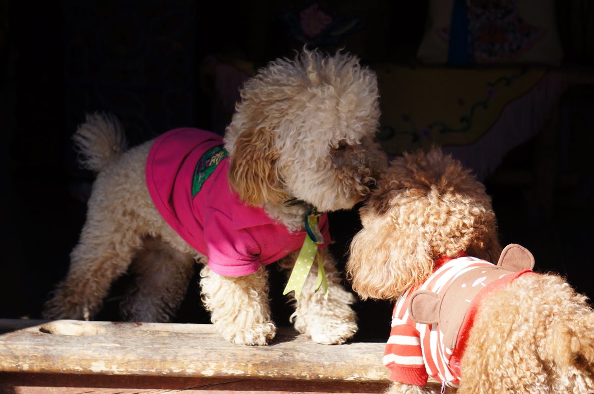 Almost every household in town has dogs—various breeds, all sizes, countless cute ones that serve as shop mascots. These dogs are as laid-back as the locals here, not as wary as city dogs. And they're greedy! A pampered dog with food security still begging for snacks—if you meet them in the morning or with food (not necessarily bones), they'll come right up. I saw two beautifully dressed poodles outside a shop, staring enviously at a child eating snacks. Ridiculously cute and funny.