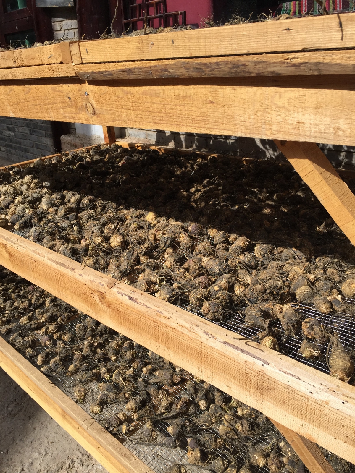 I occasionally saw locals processing something like medicinal herbs—it turned out to be maca (玛卡), once heavily hyped but now largely forgotten. Lijiang is one of maca's main production areas, but because of over-marketing, too many people grew it, effects weren't as miraculous as claimed, and prices plummeted.