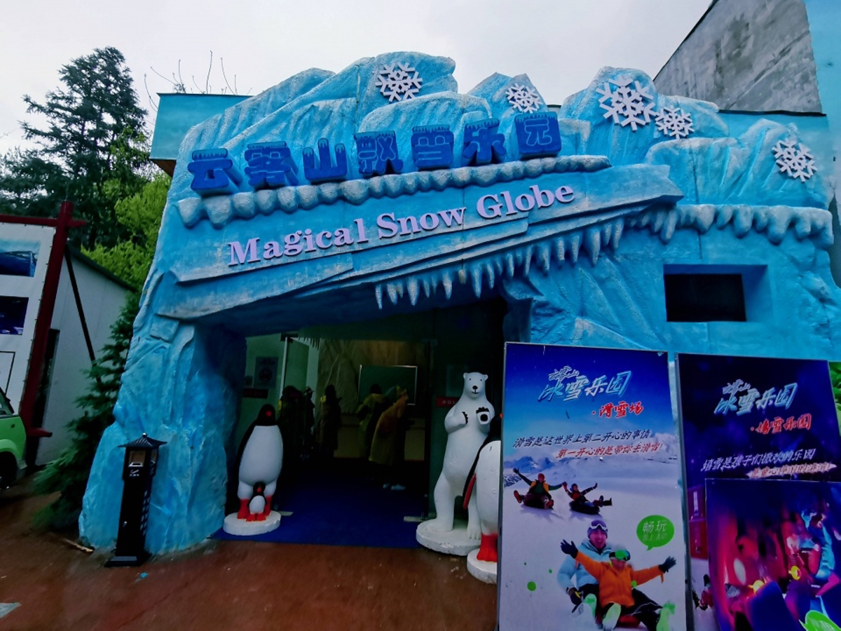 Descending the mountain, my friends and I stumbled upon something bizarre—an indoor Snow Paradise (飘雪乐园, Piāoxuě Lèyuán). It was April, and while the mountaintop was chilly, this place was downright freezing. The Snow Paradise satisfies that strange fantasy of experiencing winter in spring—you can build snowmen, go mini-skiing, and enjoy northern winter scenery that even Chinese New Year rarely delivers.