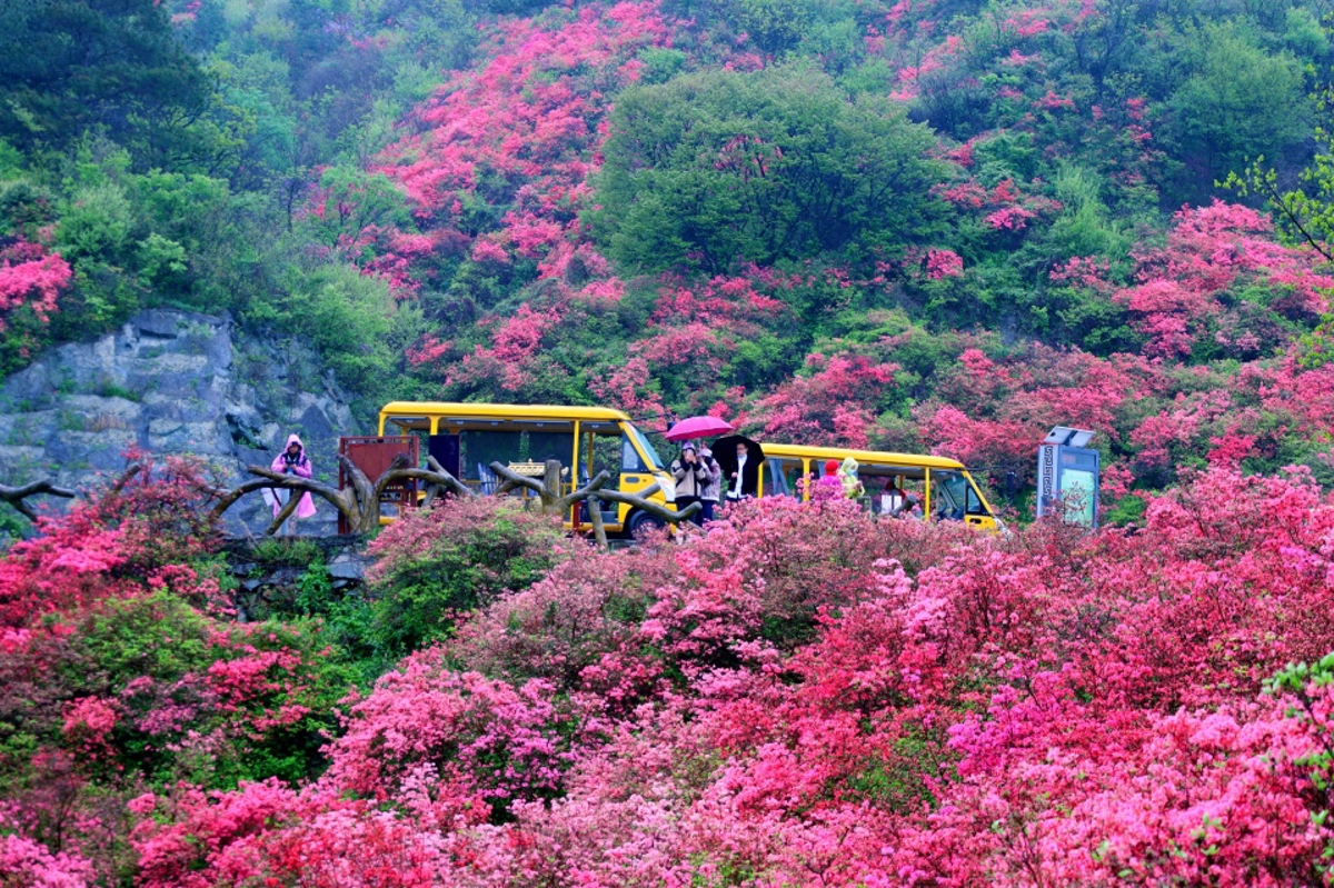 Because azaleas are also called 'Mountain Red' (映山红, Yìngshānhóng), they carry special symbolism in Chinese revolutionary history. Standing among them, I half-expected to hear the melody of 'When the Red Army returns, the mountains will be covered in azaleas' drifting through the trees.