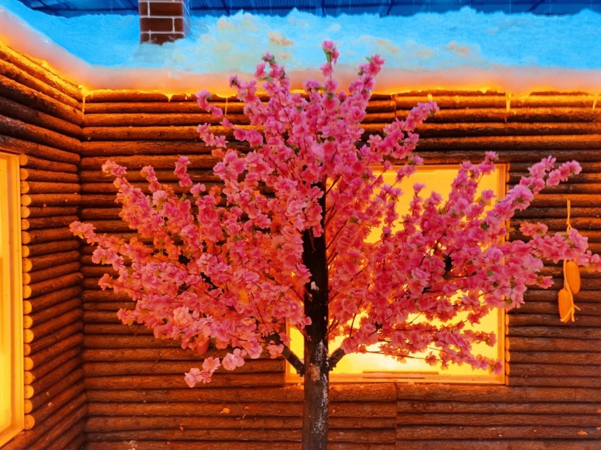 Snow houses, chimney smoke, wooden fences, red lanterns, and snow-capped mountains—it was a winter fairy tale come to life.