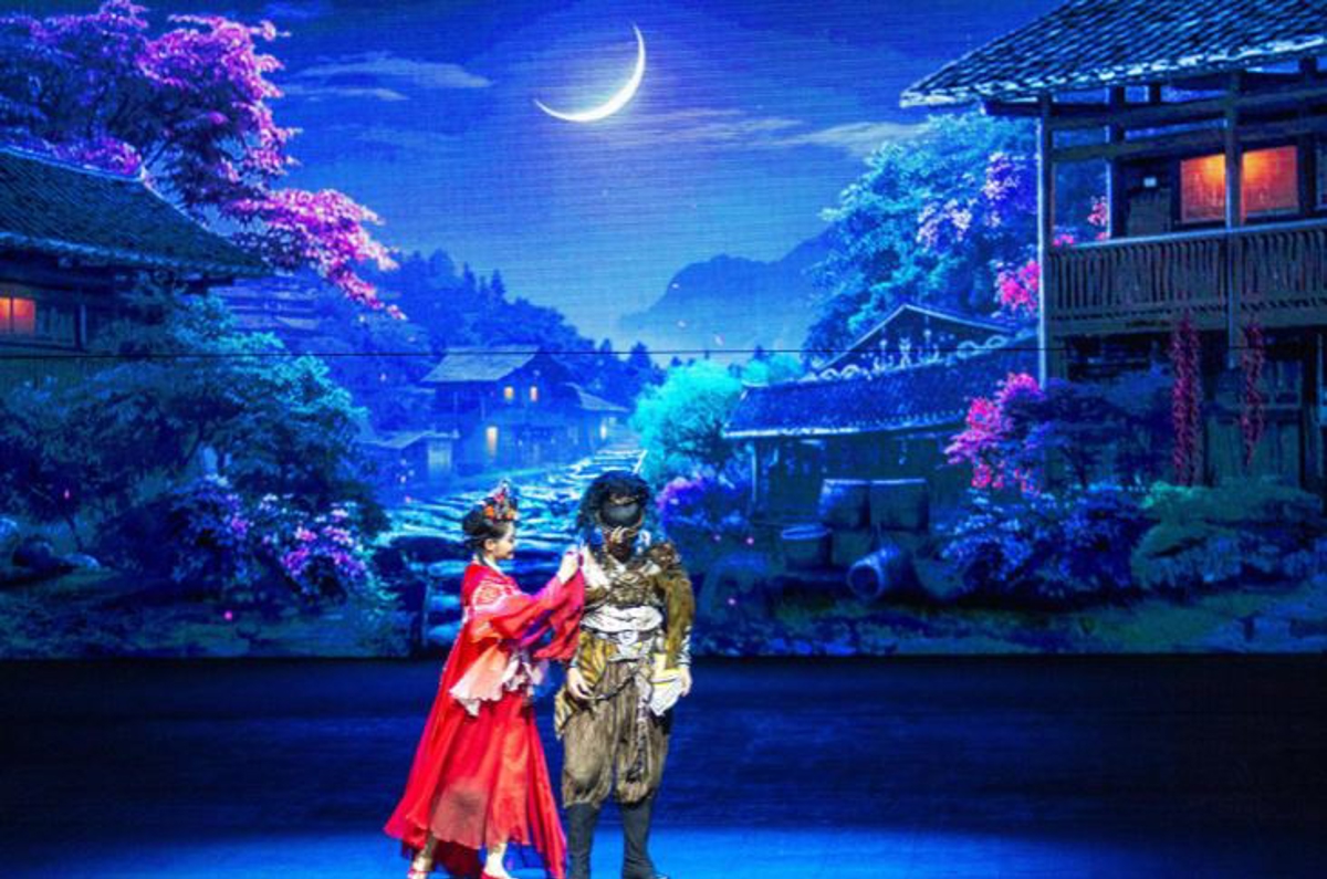 This is the Zhangjiajie Eternal Love (张家界千古情) show. Absolutely beautiful.